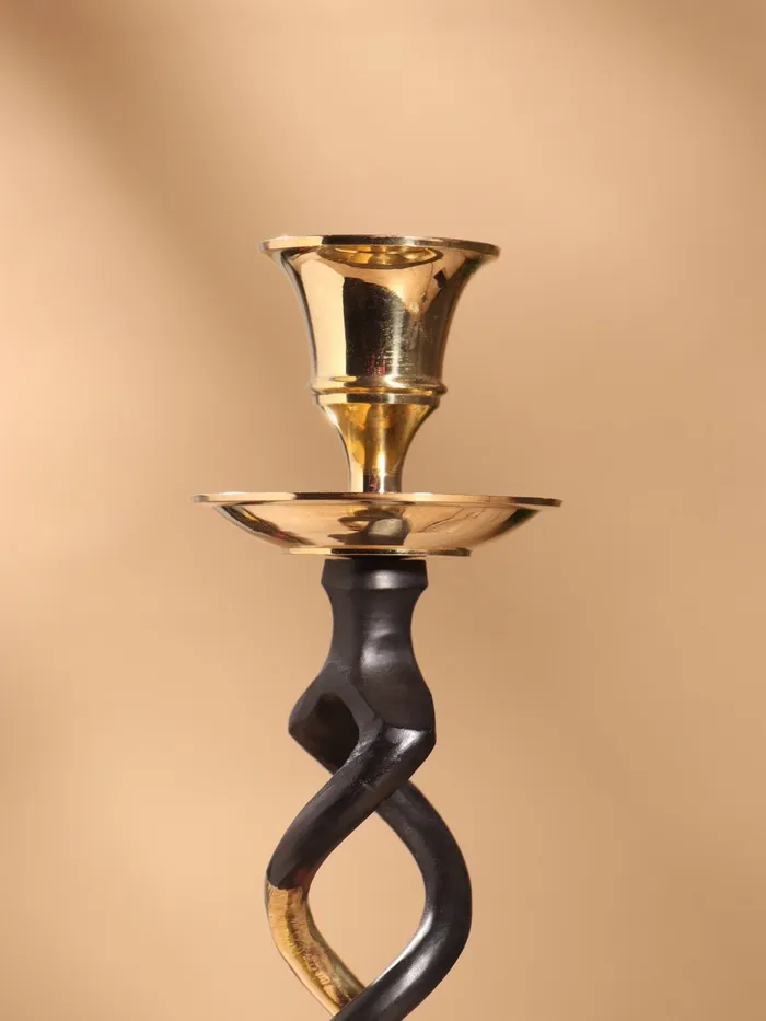 Подсвечник на 1 свечу «Золотое сечение», латунь, чёрный с золотом, 7×7×24.5 см