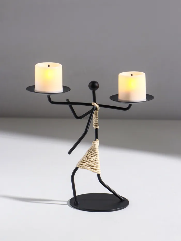 Подсвечник на 2 свечи «Абориген с коромыслом», металл, d=6 см, 17×8×17 см