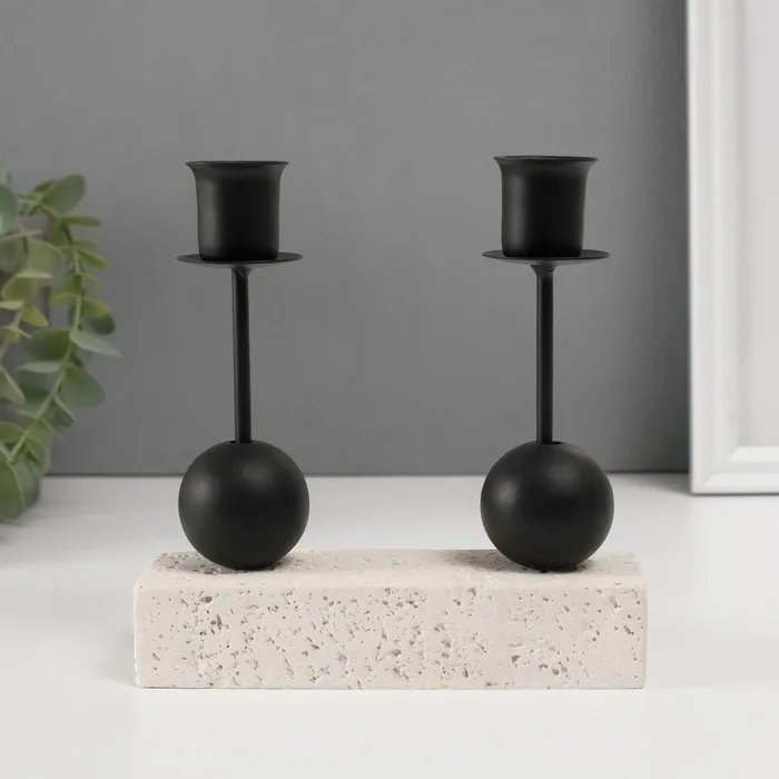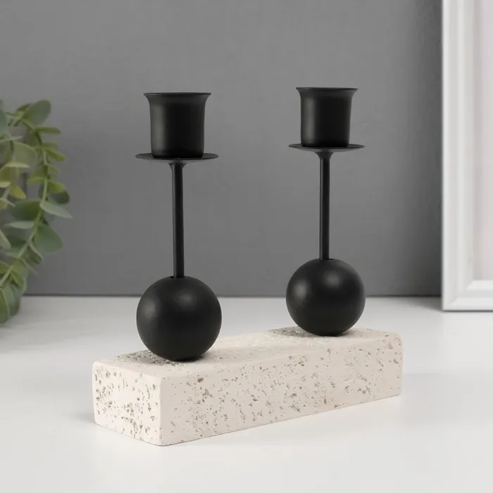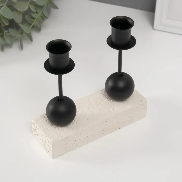Подсвечник на 2 свечи «Два шарика», гипс, металл, d=2.5 см, 5.4×15×15 см — Характеристики