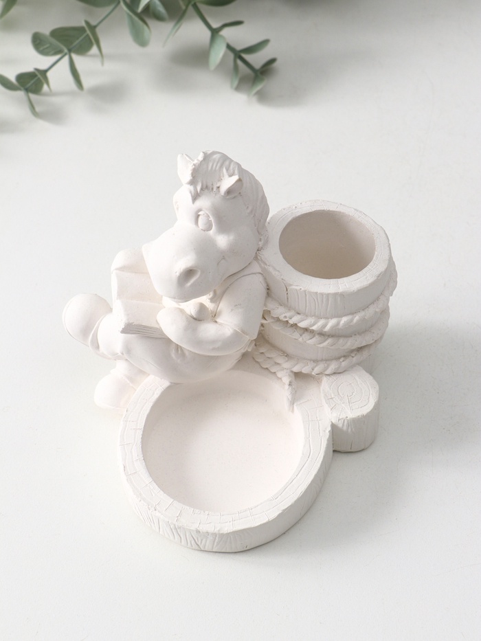 Этот двойной подсвечник из гипса станет особым акцентом в вашем доме. Образ коня с книгой создаёт атмосферу мудрости и спокойствия, превращая обычный вечер в момент умиротворения. Идеально подходит для создания мягкого, живого света от двух свечей.