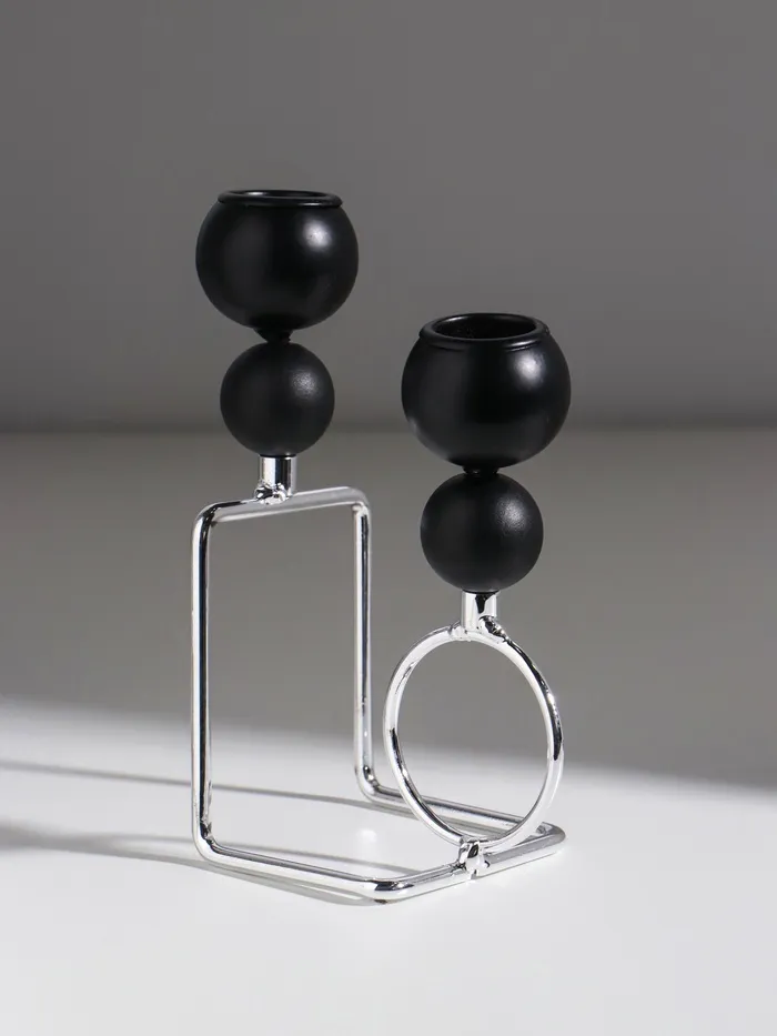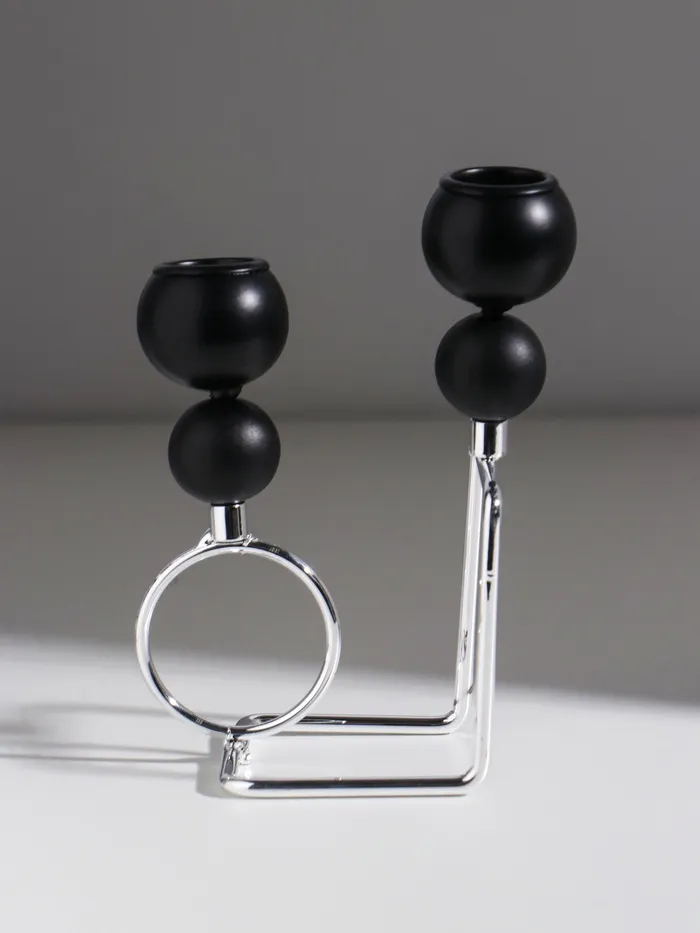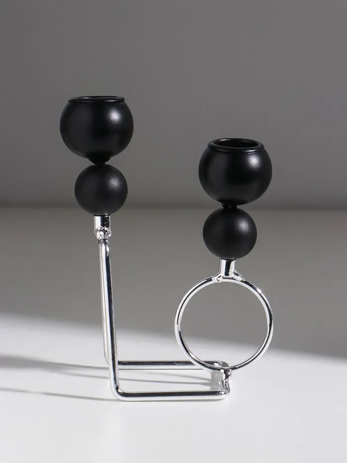 Подсвечник на 2 свечи «Шары. Абстракция», d=2.2 см, чёрный и хром, 11.5×7×16.2 см — Характеристики