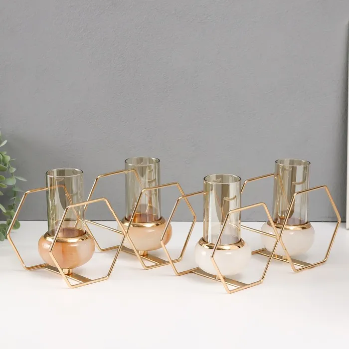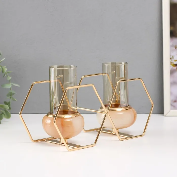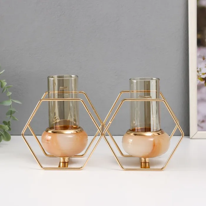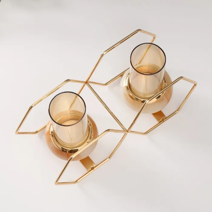 Подсвечник на 2 свечи «Шестигранники», металл, стекло, белый с золотом, 15.5×26.5×10.5 см — Характеристики