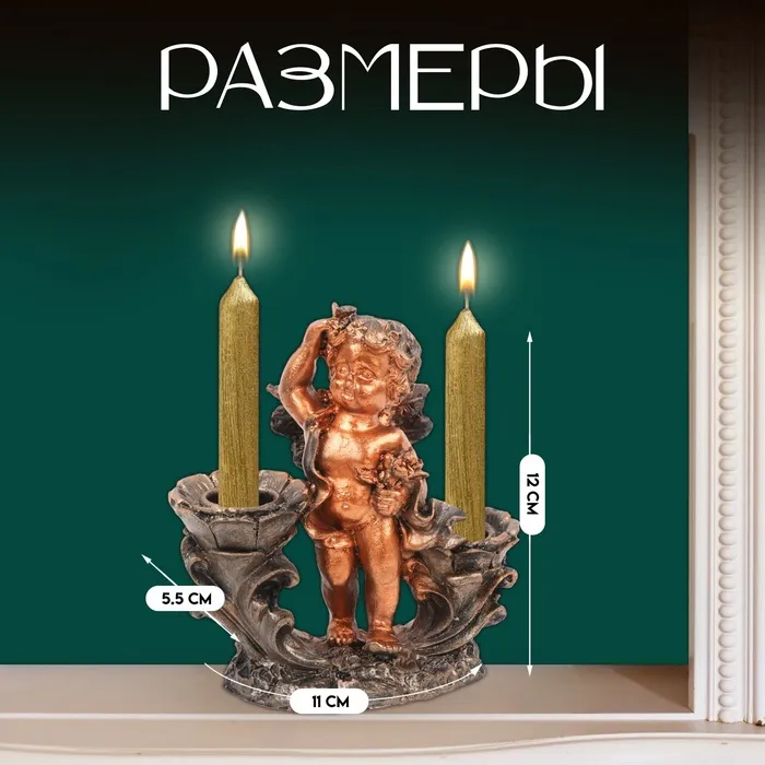 Подсвечник на 2 свечи TAKE IT EASY «Ангелочек смотрит», полистоун, 11×5.5×12 см — Характеристики