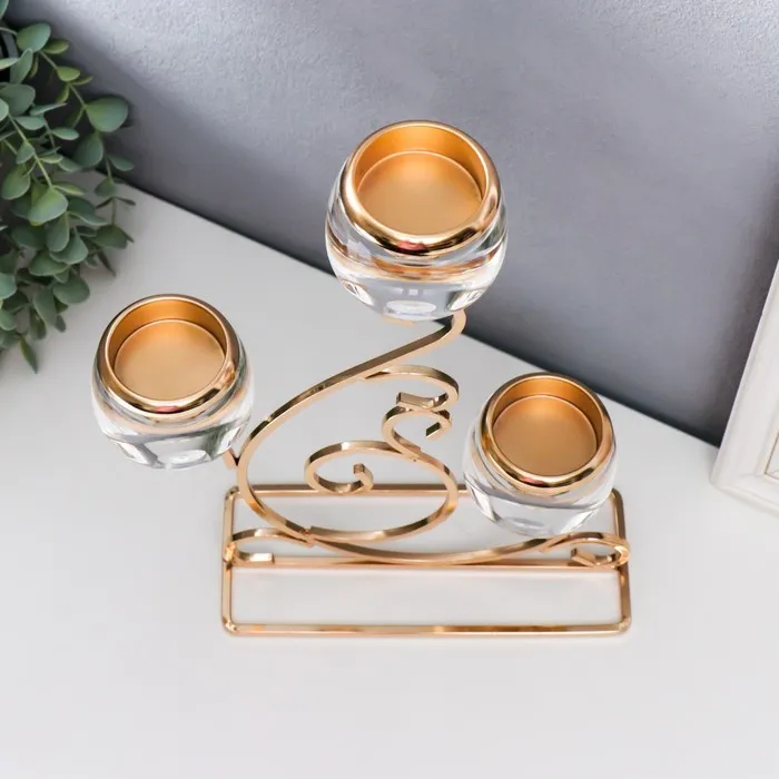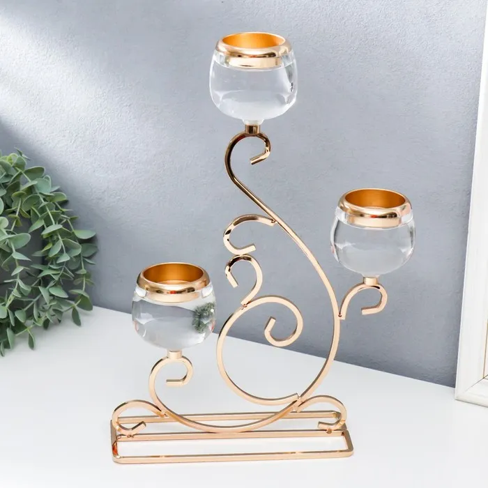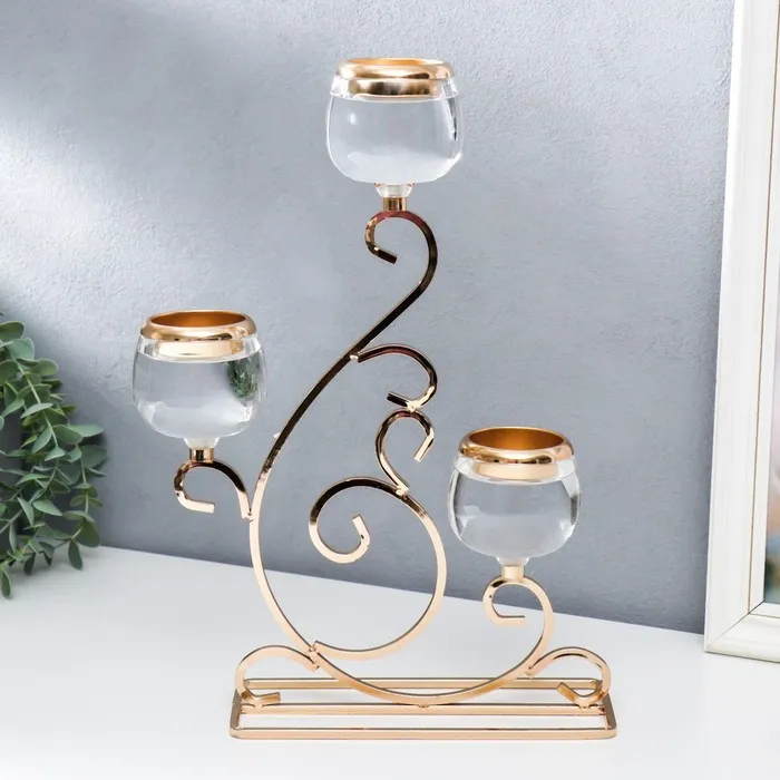 Подсвечник на 3 свечи «Гранде», металл, акрил, золото, 25×8×36 см — Характеристики