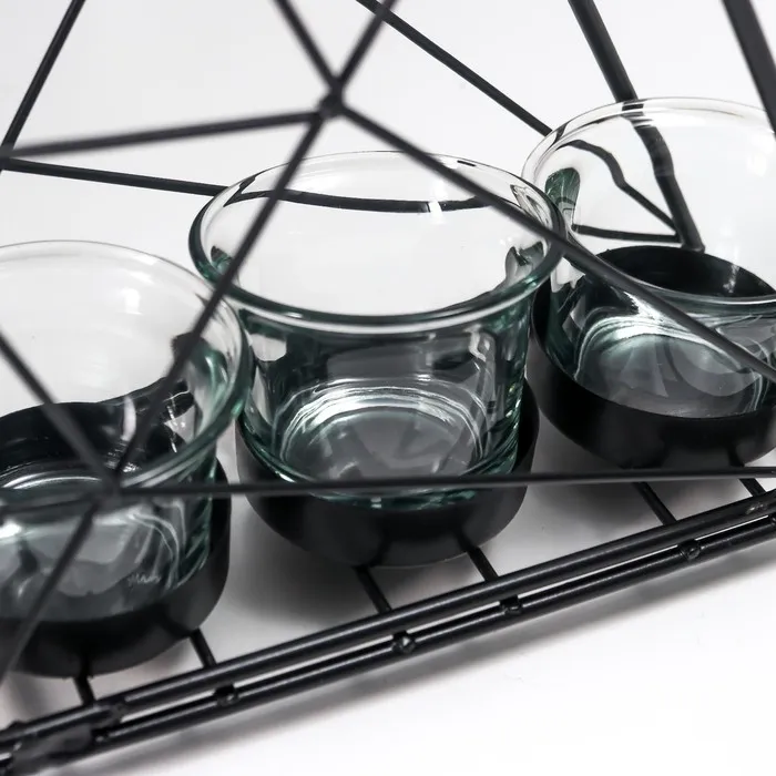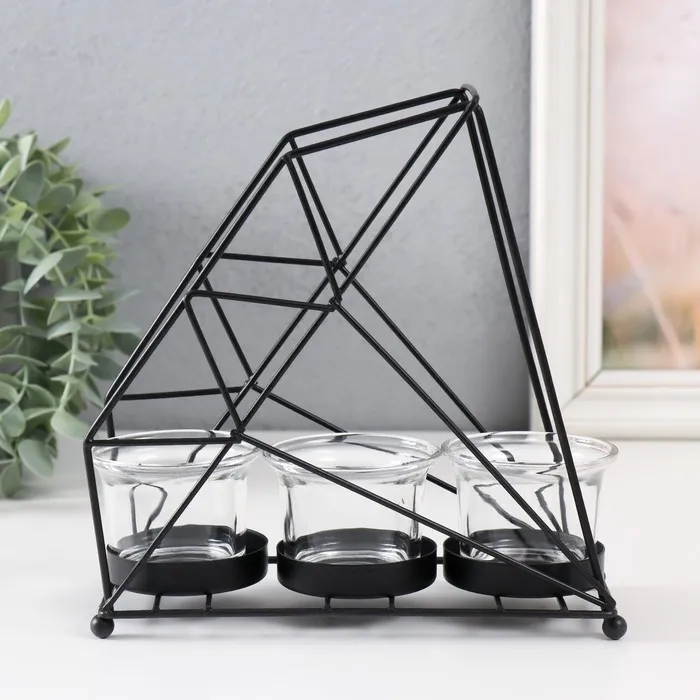 Подсвечник на 3 свечи «Лофт. Трапеция», металл, стекло, чёрный, 21×7×18 см — Характеристики