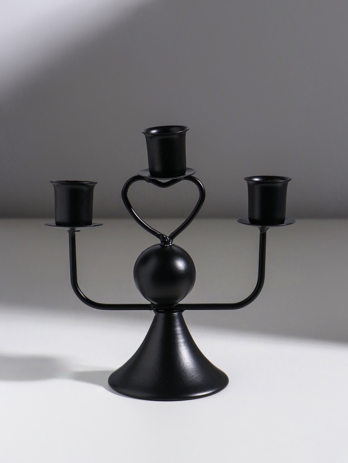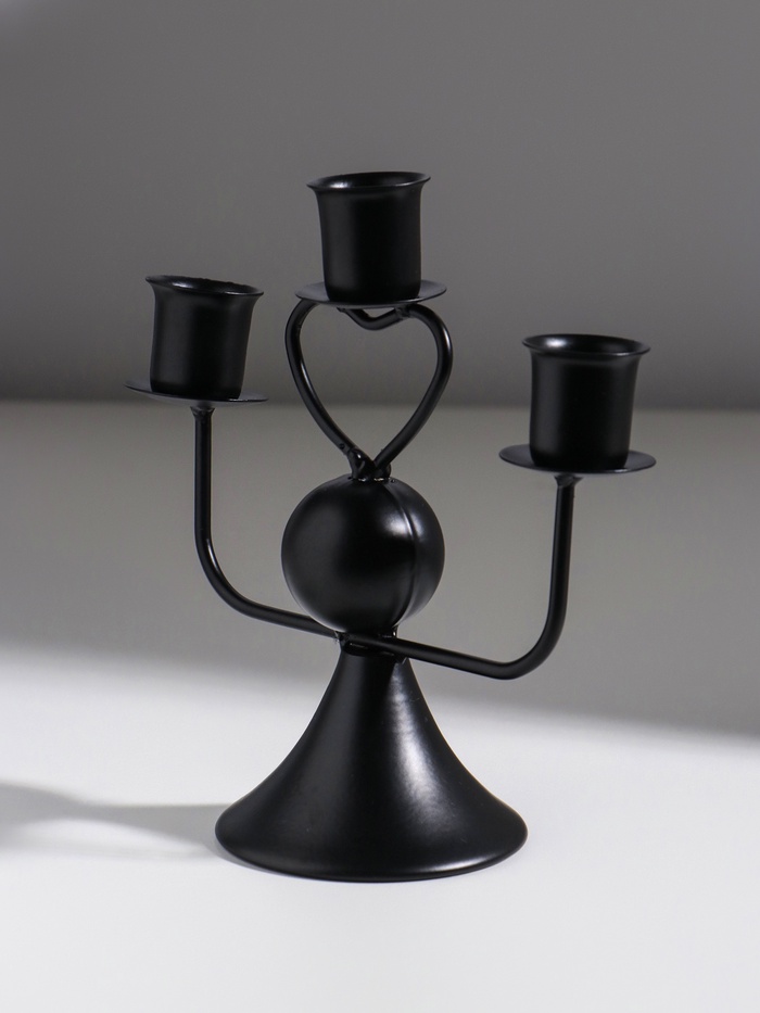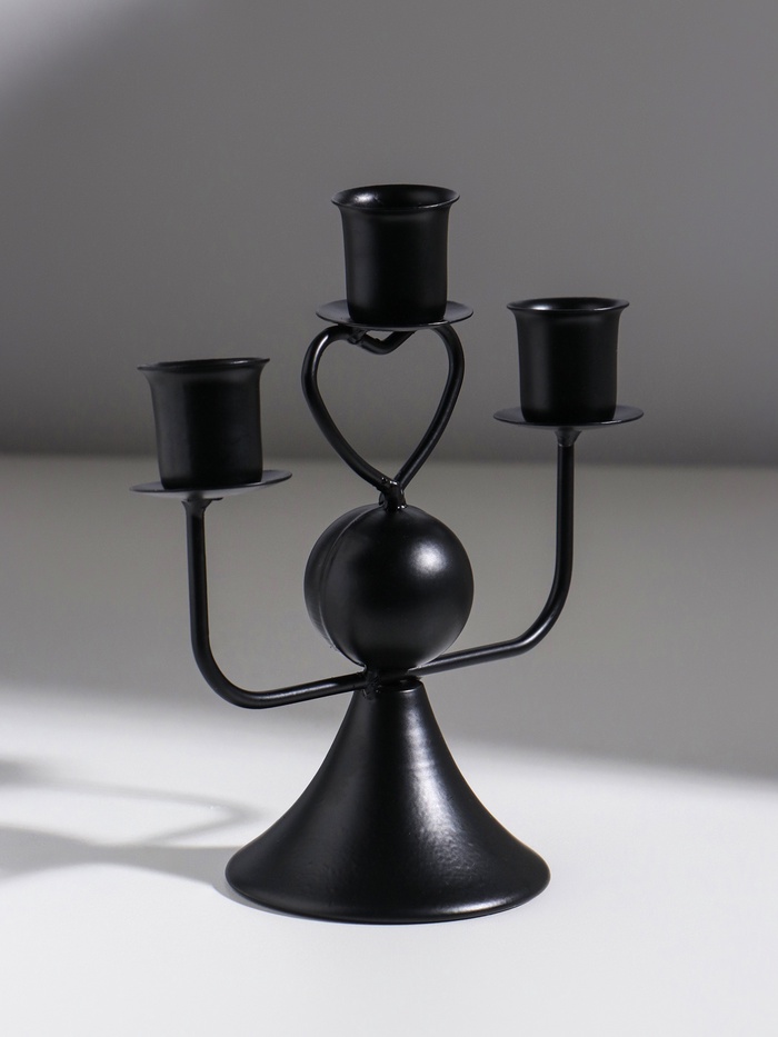 Подсвечник на 3 свечи «Сердечко», d=2.5 см, чёрный, 16.5×7×14 см — Характеристики