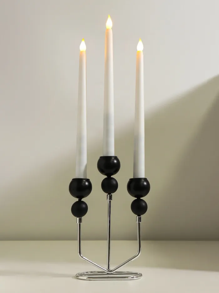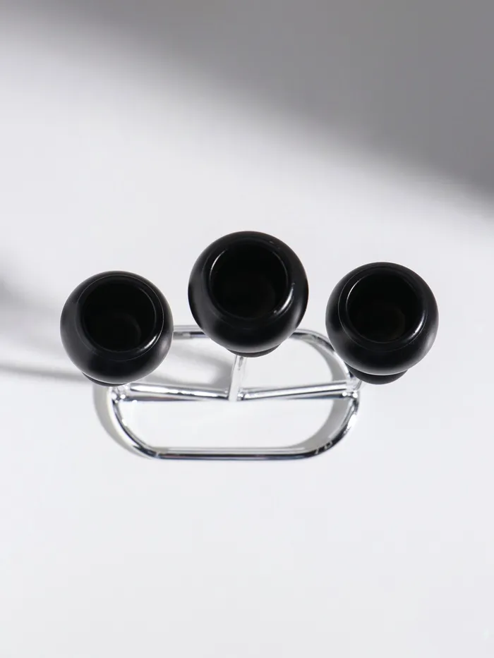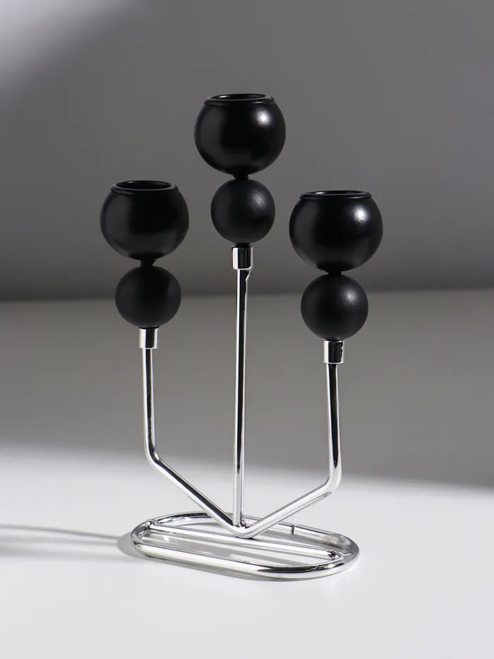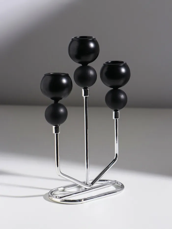 Подсвечник на 3 свечи «Шары. Абстракция», d=2.5 см, чёрный и хром, 14.3×6×21 см — Характеристики