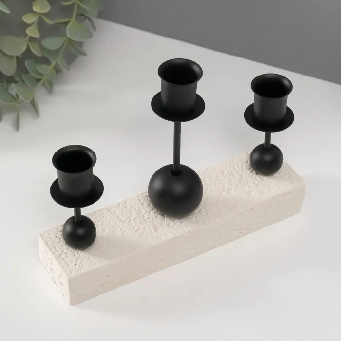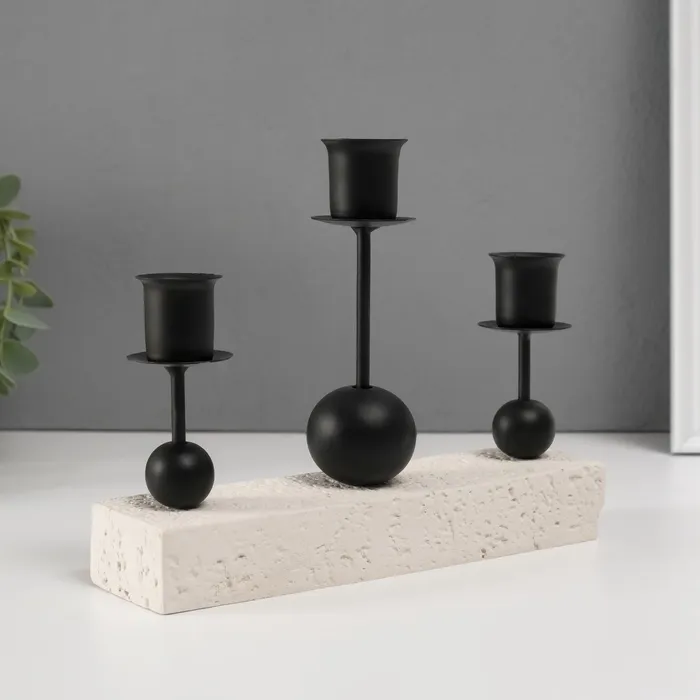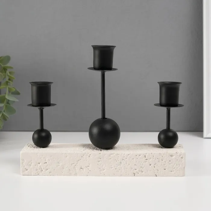 Подсвечник на 3 свечи «Три шарика», гипс, металл, d=2.5 см, 5.5×20.4×15 см — Характеристики