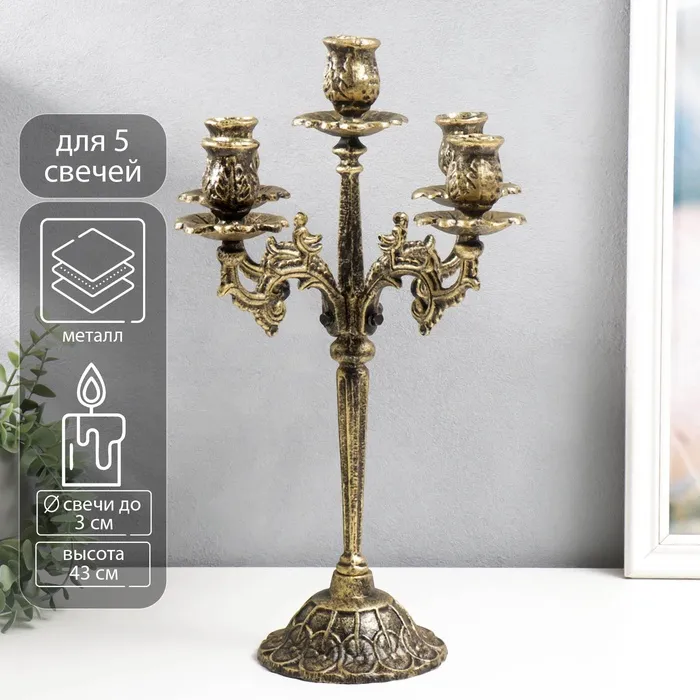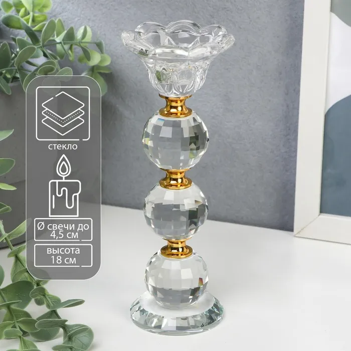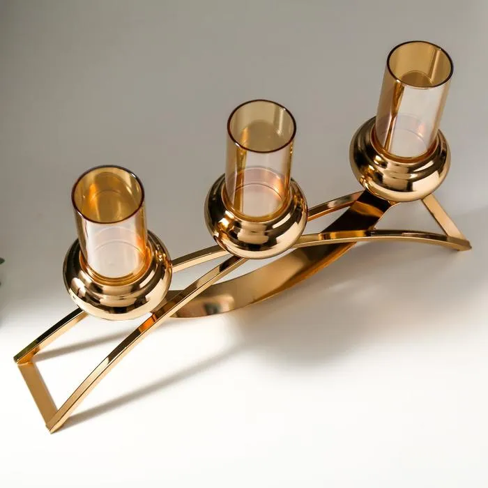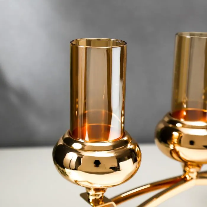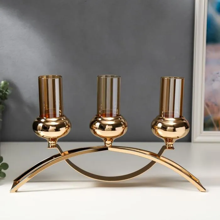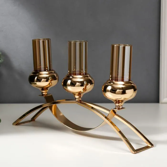 Подсвечник на 3 свечи «Зеркало души», металл, стекло, золото, 22.5×41.5×8.5 см — Характеристики