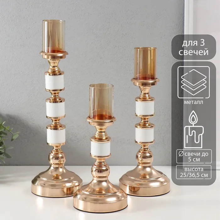Подсвечник на 4 свечи «Бусы. Авокадо», с 8 сферами, 19×19×5.5 см — Характеристики