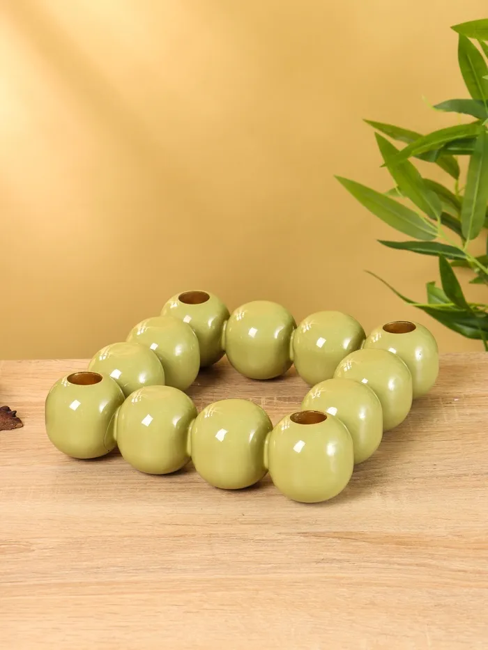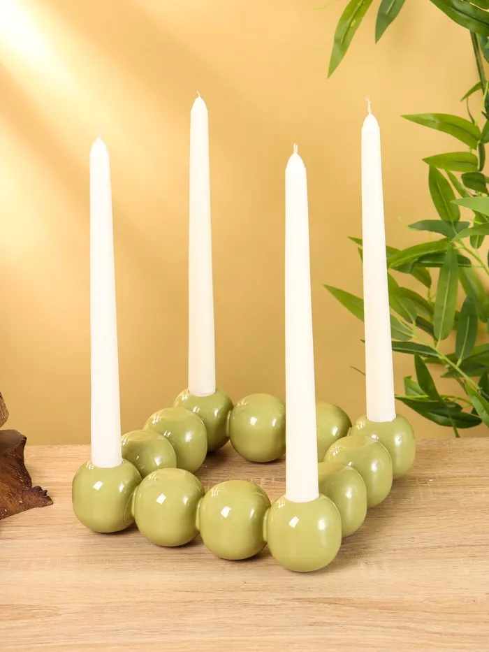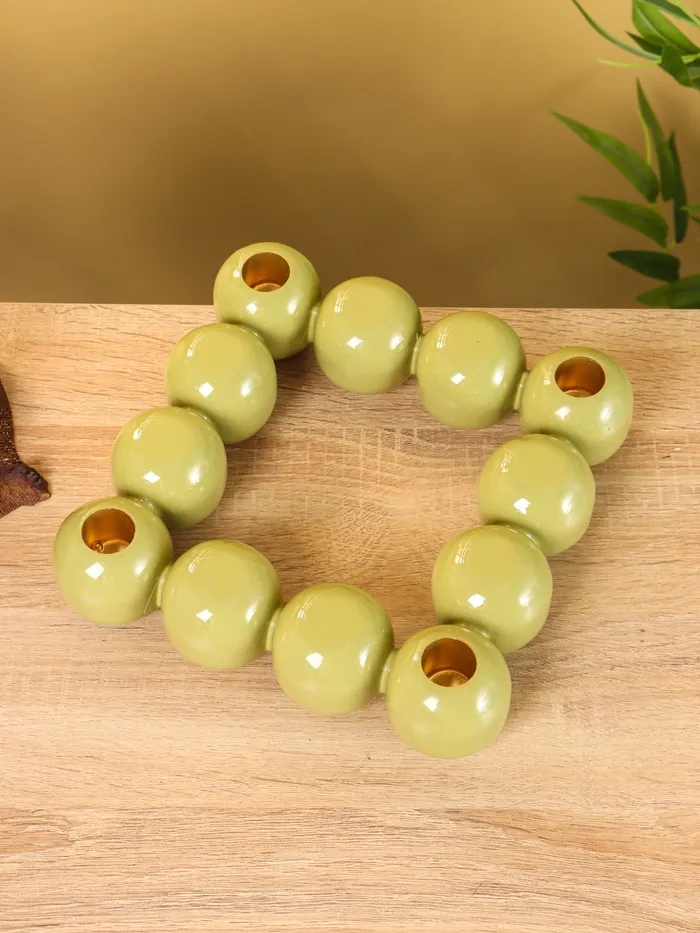 Подсвечник на 4 свечи «Бусы», с 12 сферами, 20.5×20.5×5.5 см, оливковый — Характеристики