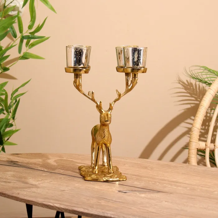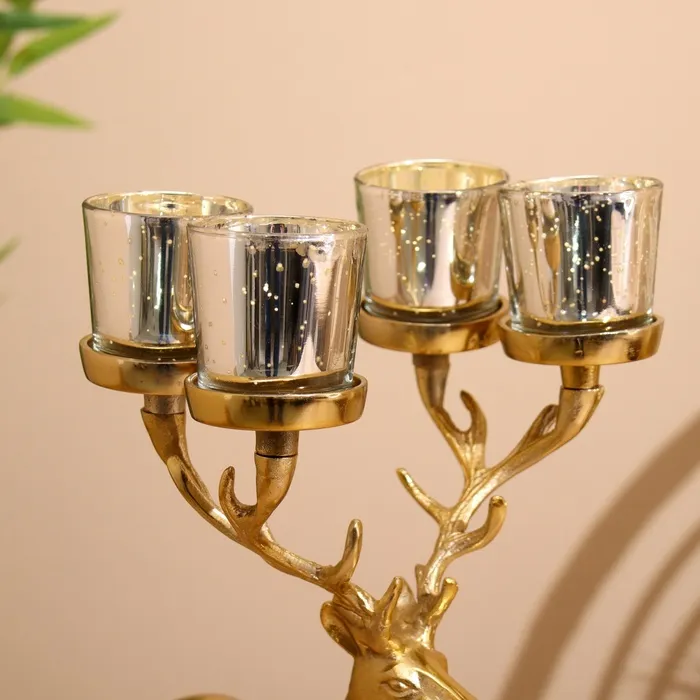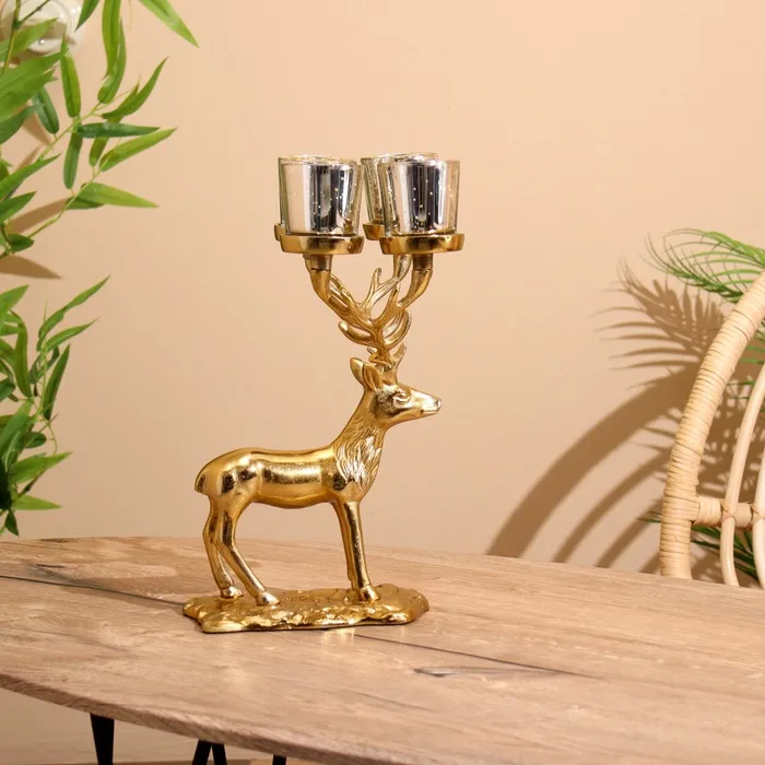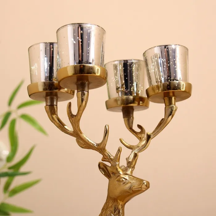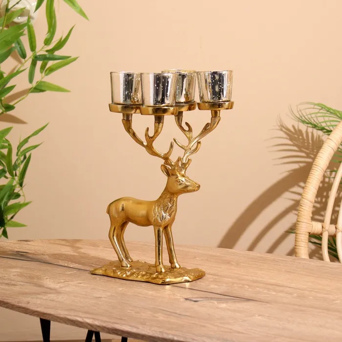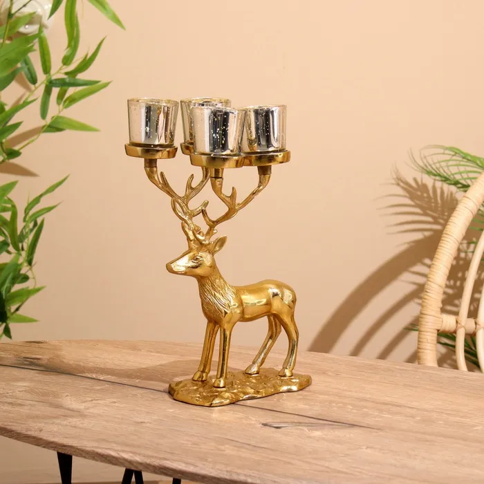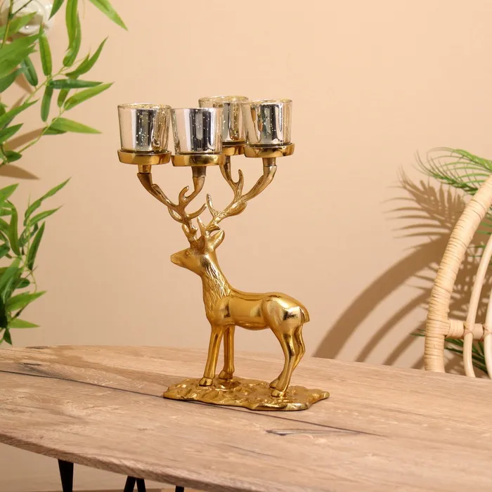 Подсвечник на 4 свечи "Олень" алюминий 18х20х35 см