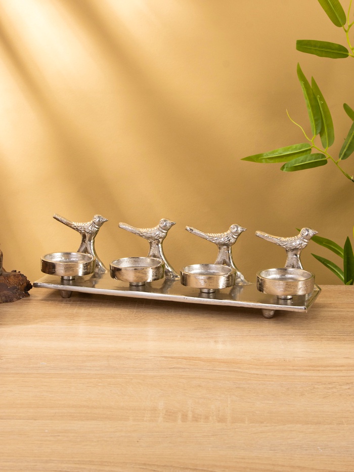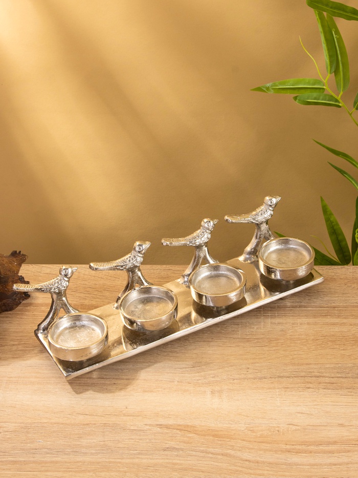 Подсвечник на 4 свечи «Птенцы», 32.5×9×7 см, алюминий