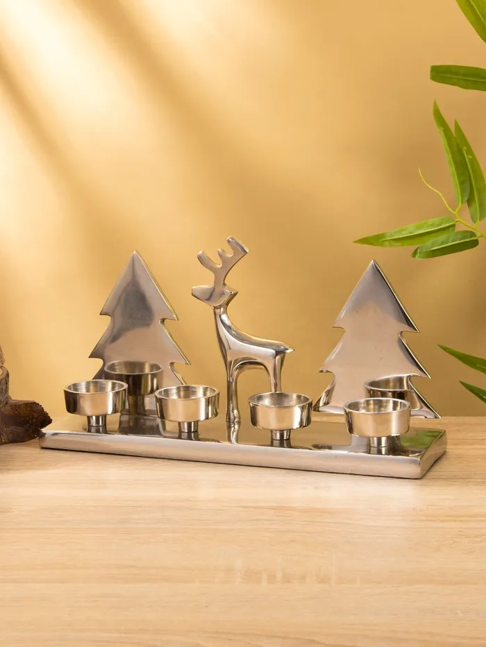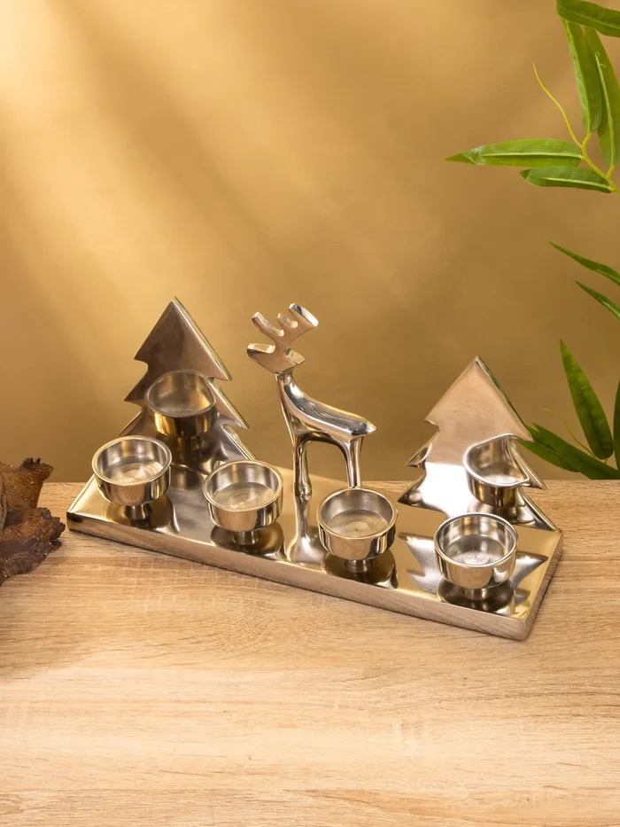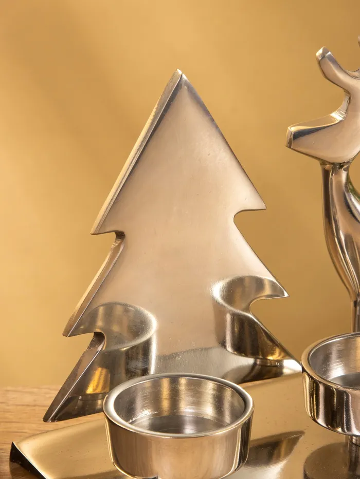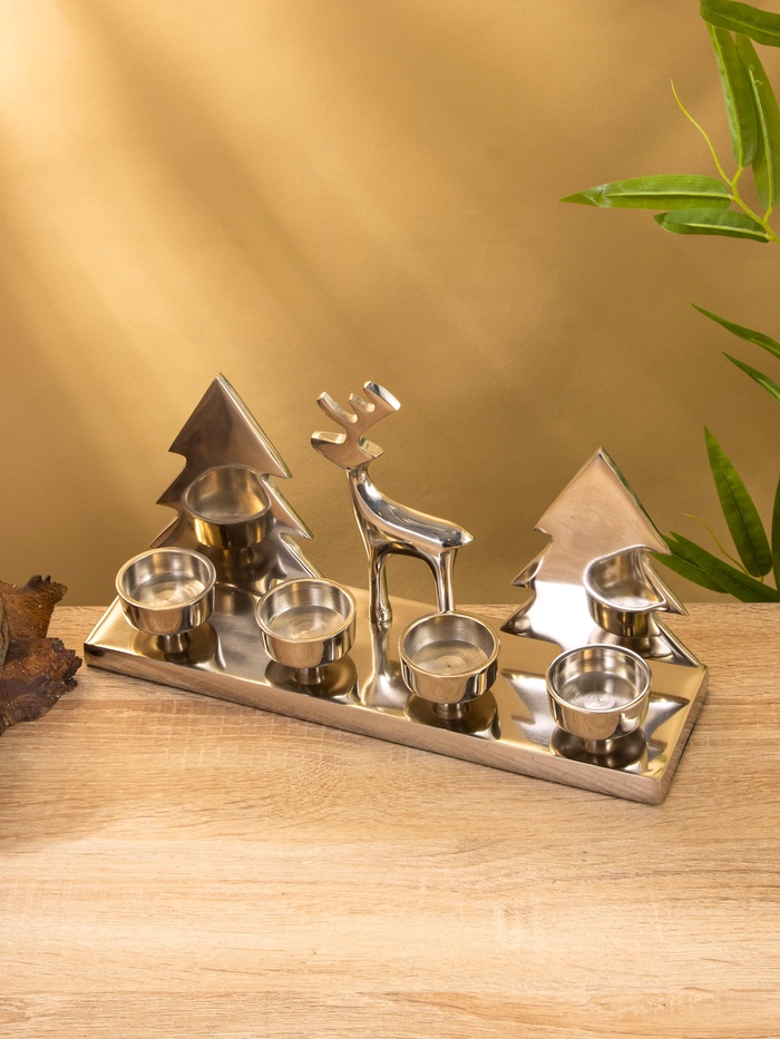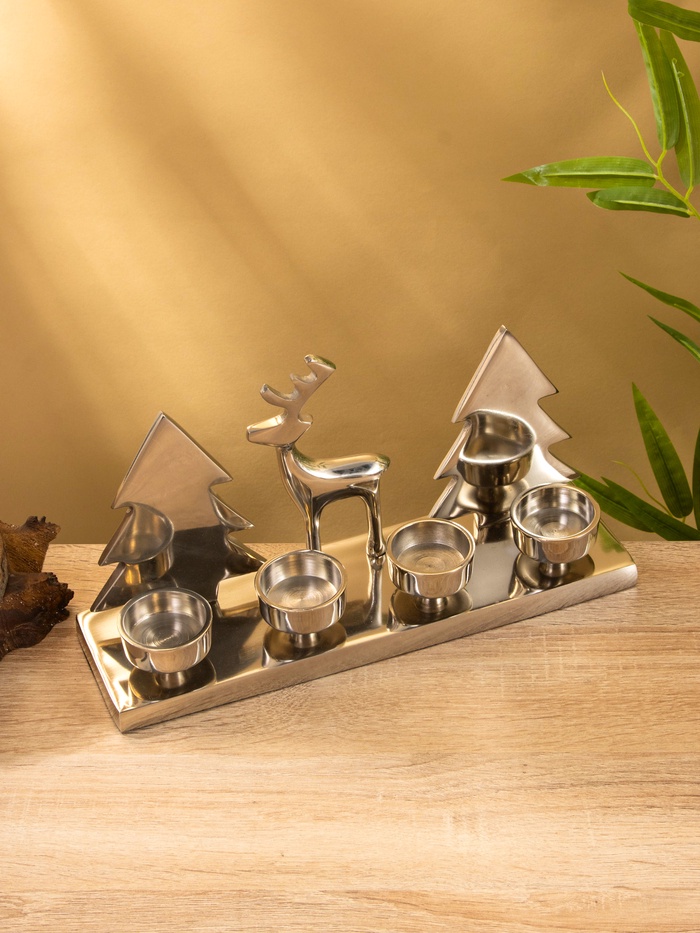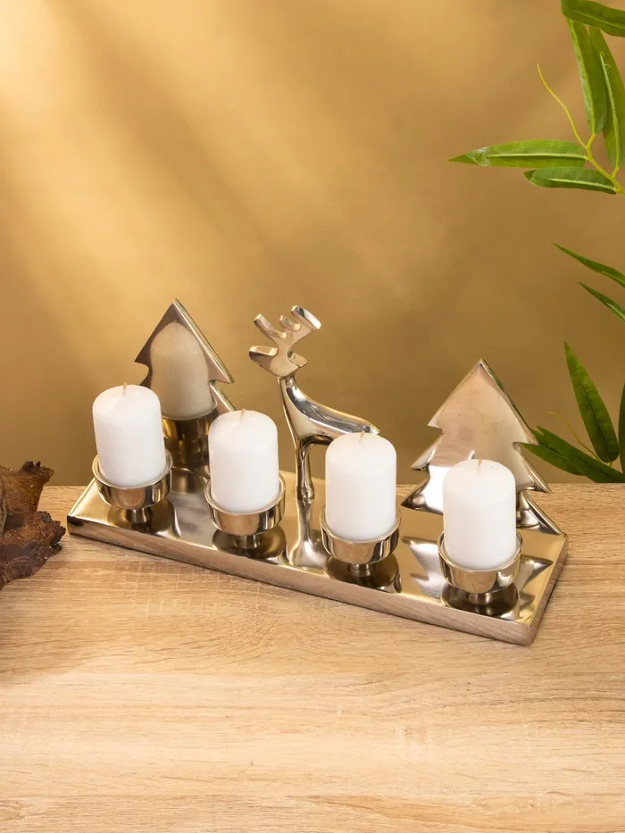 Подсвечник на 4 свечи «Рудольф и ёлки», 30×9×15 см, алюминий