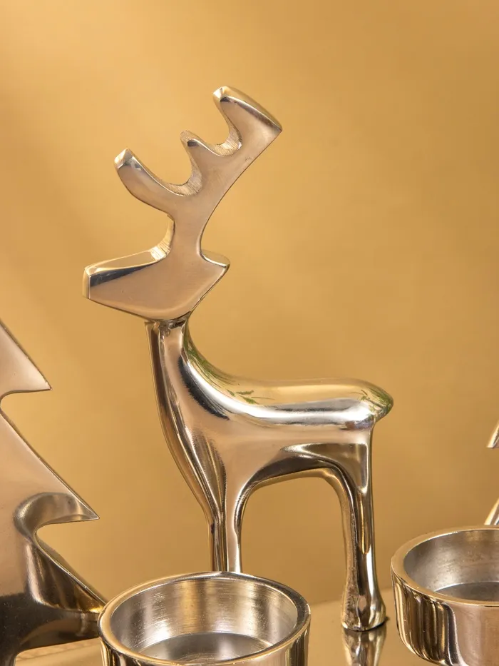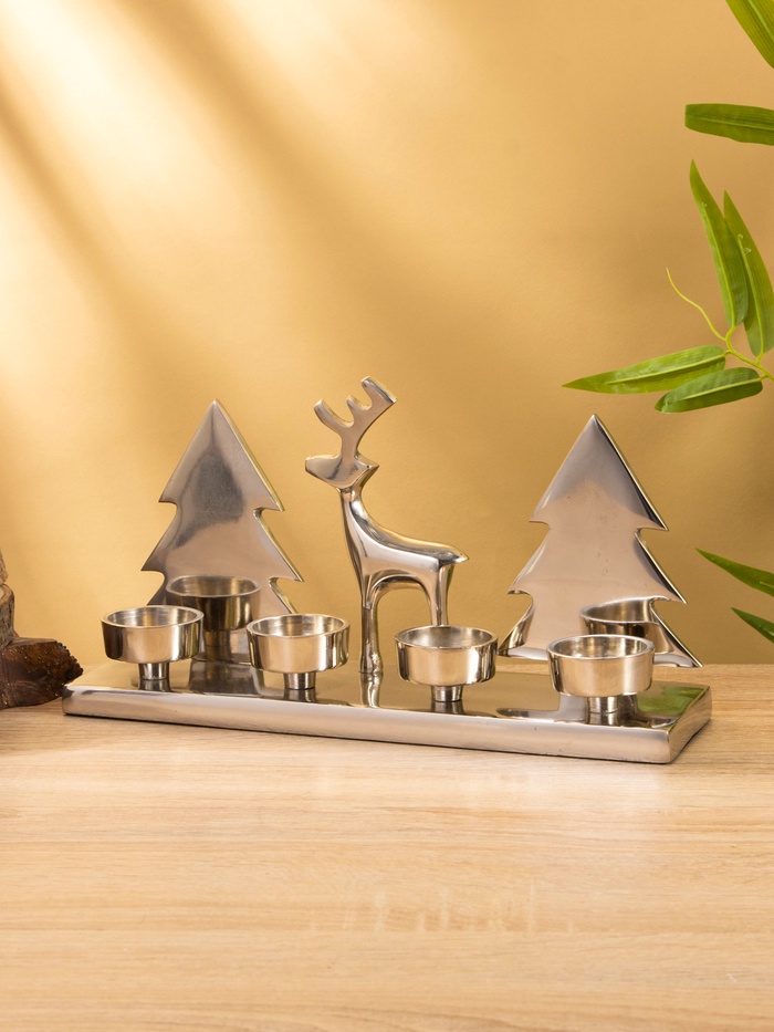 Подсвечник на 4 свечи «Рудольф и ёлки», 30×9×15 см, алюминий — Характеристики