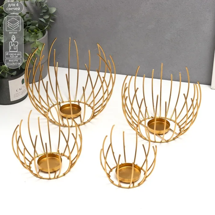Металлический подсвечник на 1 свечу «Шар из прутьев», набор 4 шт., золото, 17×20×20 см