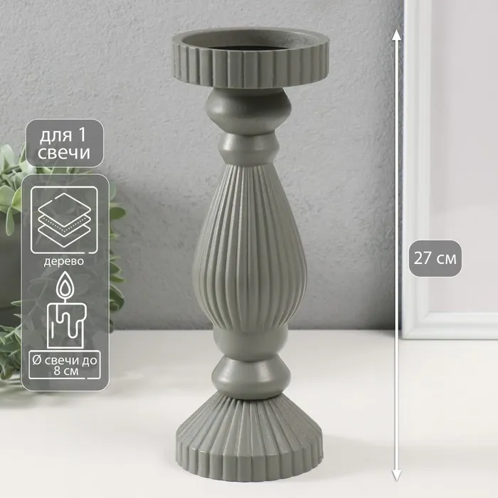 Деревянный подсвечник на 1 свечу «Гофре», серый, 9.7×9.7×27 см