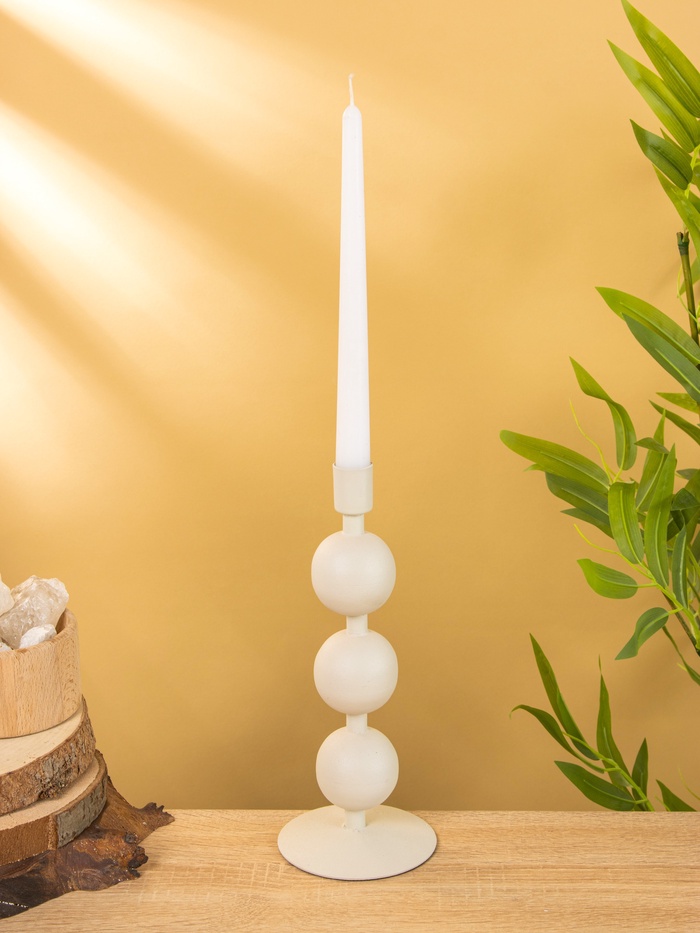 Подсвечник на 1 свечу текстурный «Бежевый», с 3 сферами, 10×10×25 см