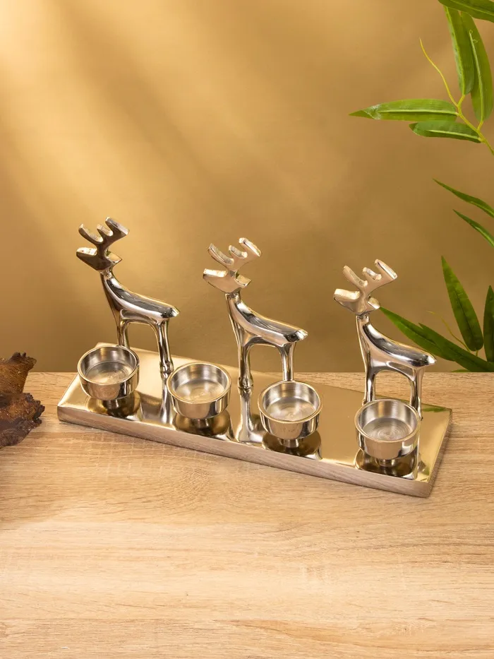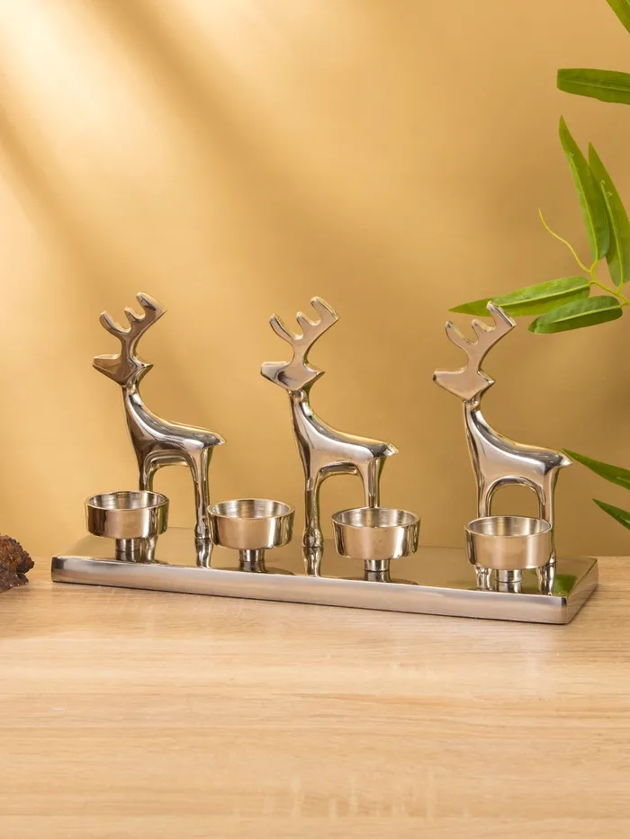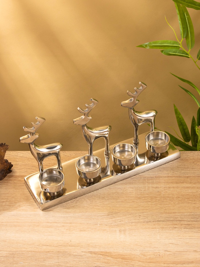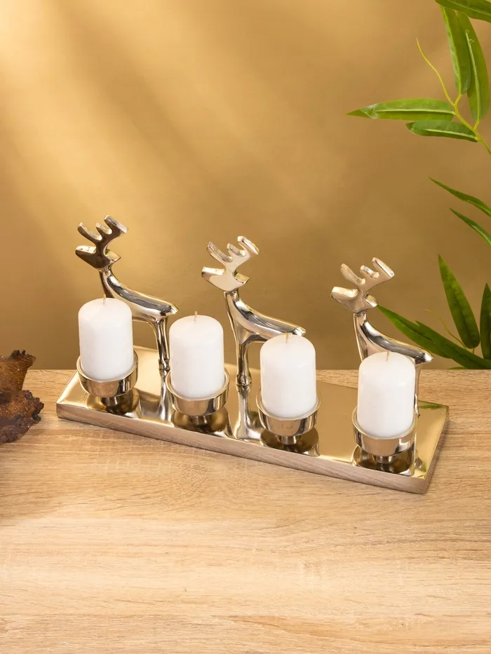 Подсвечник на 4 свечи «Трио оленей», 30×9×15 см, алюминий