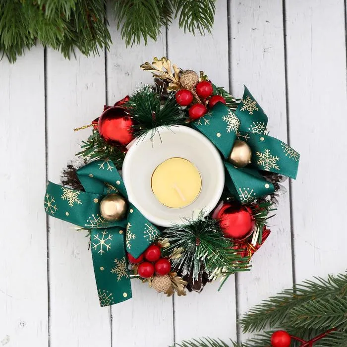 Подсвечник на одну свечу «Гранд» с ягодками и шишками 16 см, d=6.5 см — Характеристики