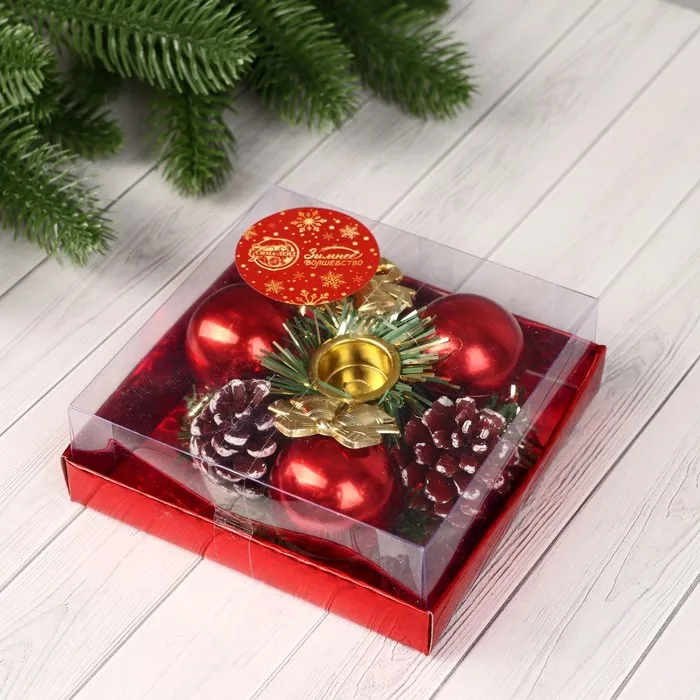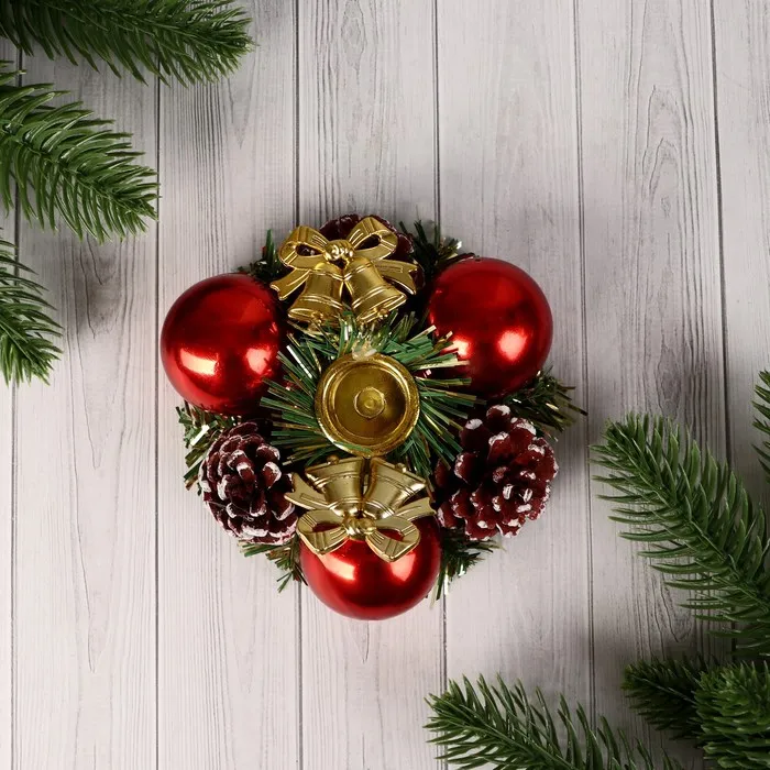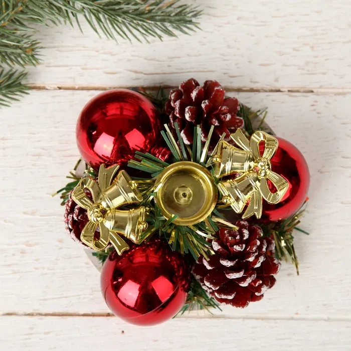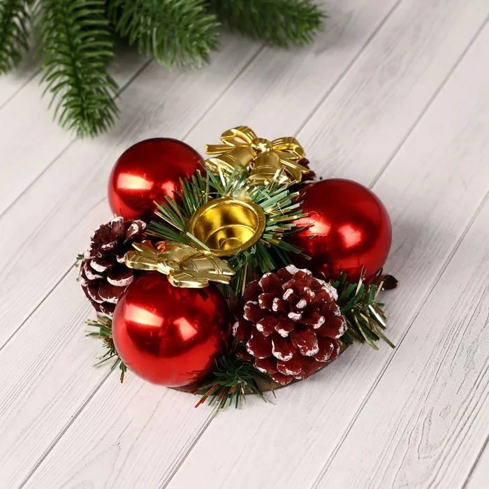 Подсвечник на одну свечу «Колокольчики» шишки, шарики, 11×4 см, d=2 см — Характеристики