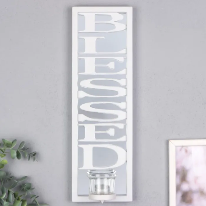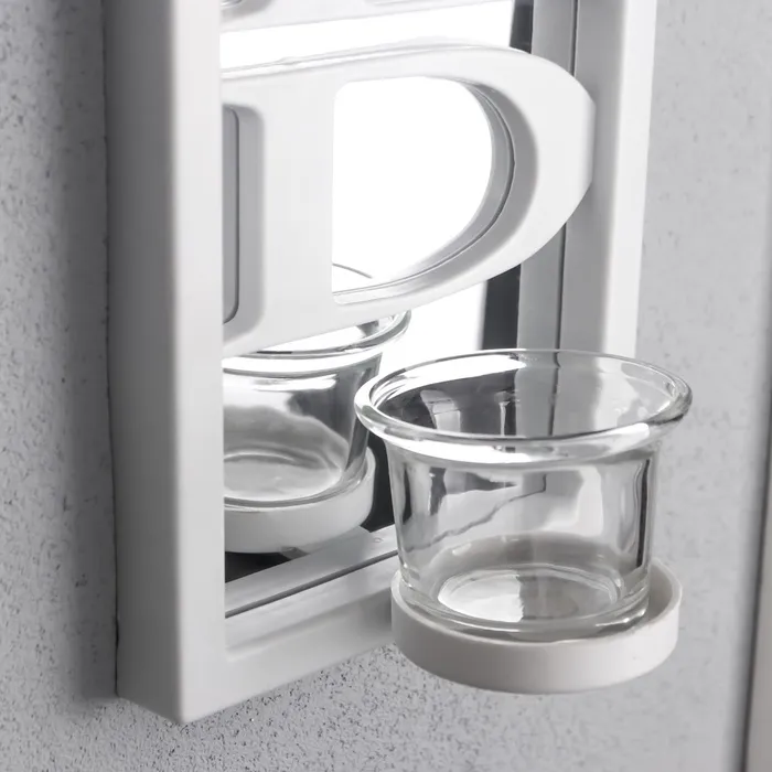 Подсвечник настенный на 1 свечу «Отражение благословения», зеркальный, пластик, стекло, d-4 см, белый, 8×12×41 см