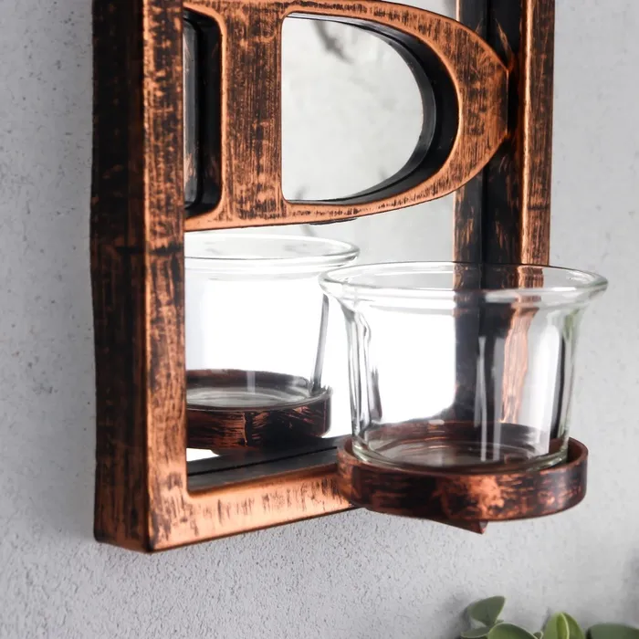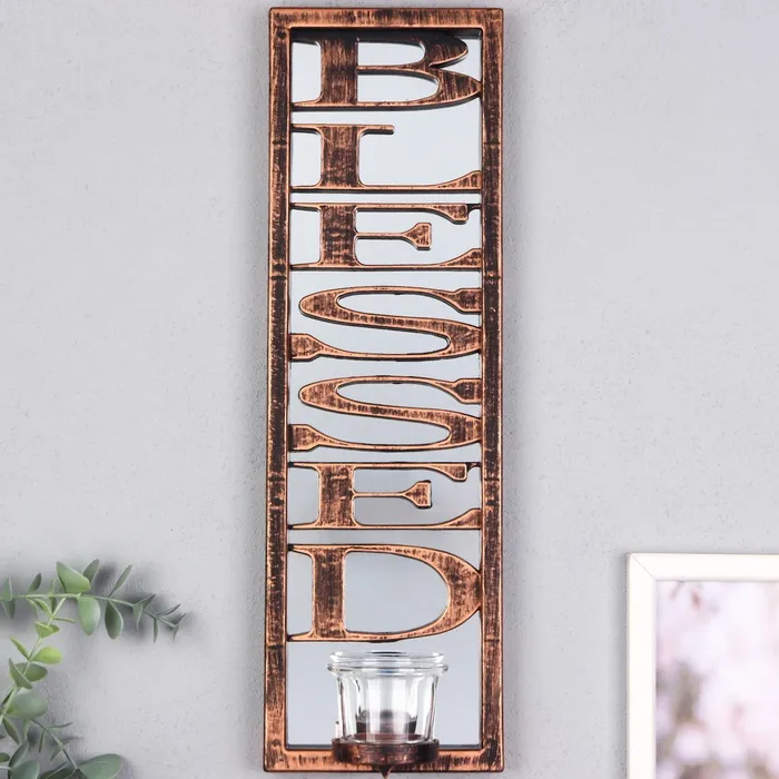 Подсвечник настенный на 1 свечу «Отражение благословения», зеркальный, пластик, стекло, d-4 см, бронза, 8×12×41 см