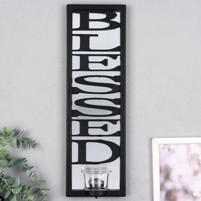 Подсвечник настенный на 1 свечу «Отражение благословения», зеркальный, пластик, стекло, d-4 см, чёрный, 8×12×41 см