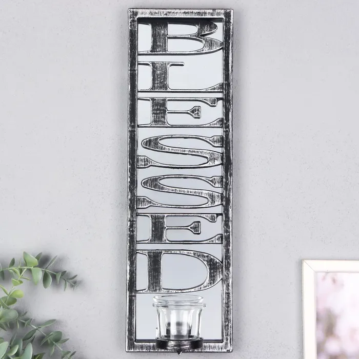 Подсвечник настенный на 1 свечу «Отражение благословения», зеркальный, пластик, стекло, d-4 см, серебро, 8×12×41 см