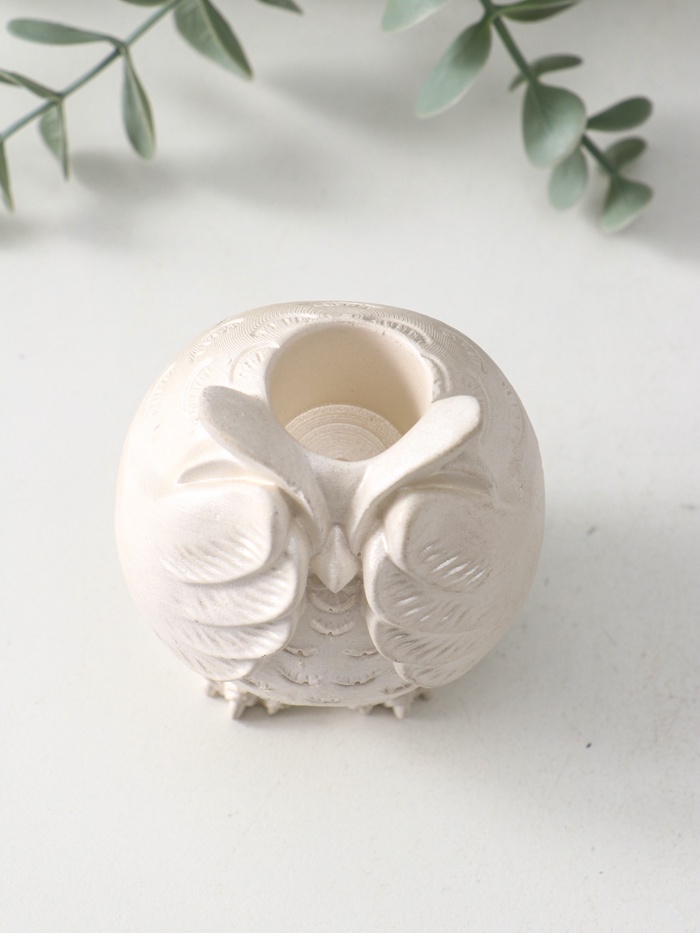 Этот изящный подсвечник в виде совы станет тёплым и мудрым акцентом в интерьере. Он создаёт уютную атмосферу для размышлений и отдыха, а его универсальный дизайн подходит для любого времени года.