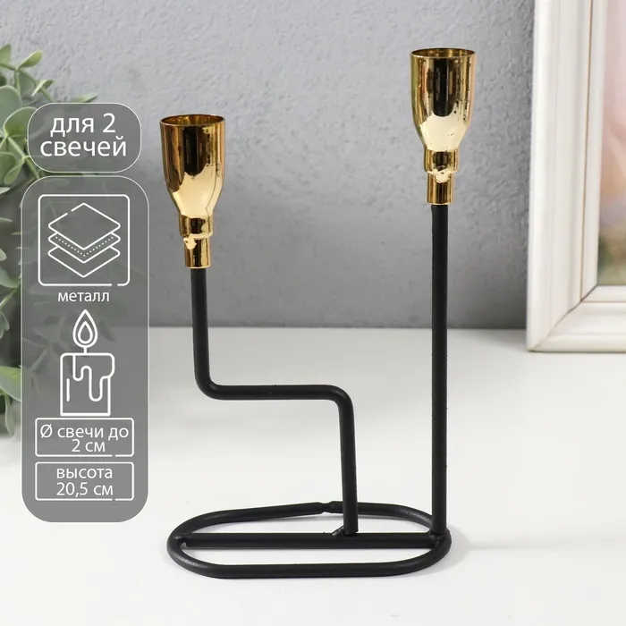 Металлический подсвечник на 2 свечи «Перс», чёрный с золотом, 12.7×5.8×20.5 см