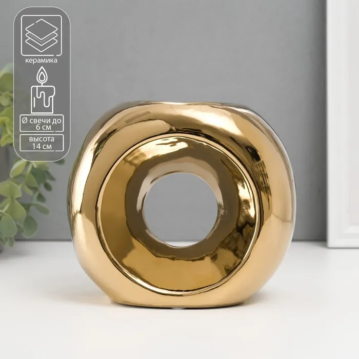 Подсвечник керамика на 1 свечу «Кольцо», d=6 см, золото, 16×8×14 см