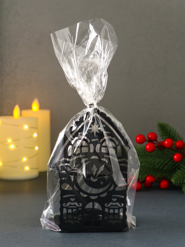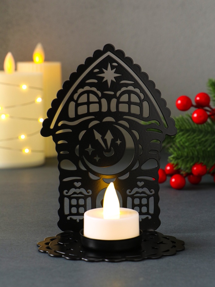 Подсвечник новогодний "Домик с часами" чёрный 6,7х10х13,5 см — Характеристики