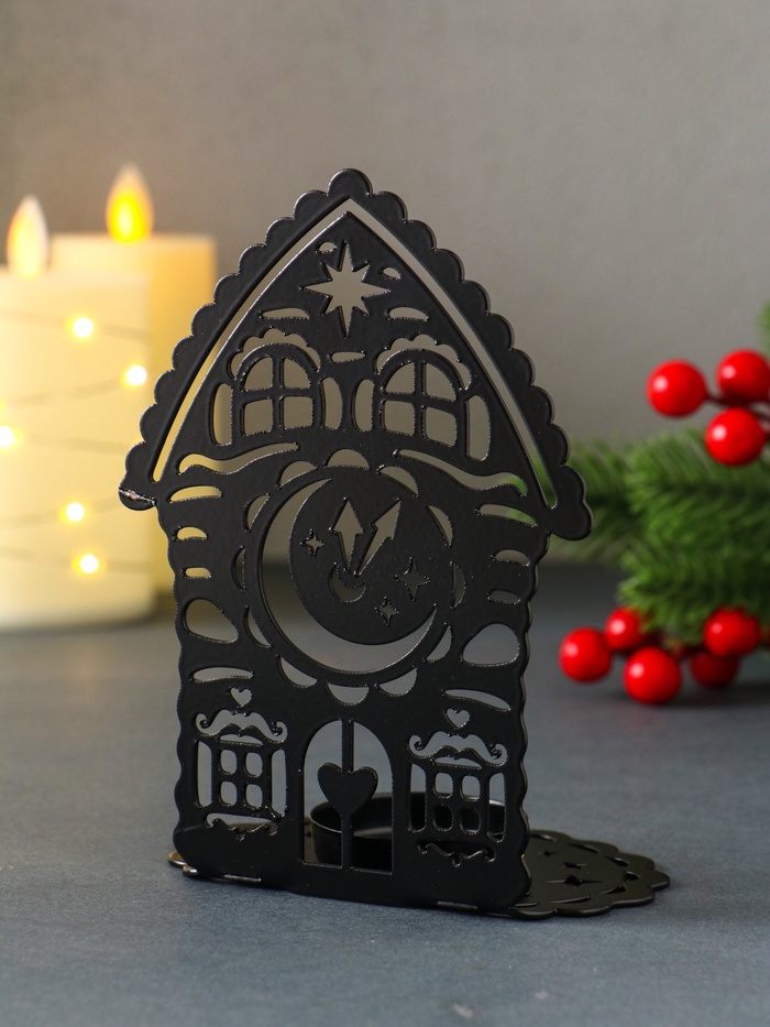 Подсвечник новогодний "Домик с часами" чёрный 6,7х10х13,5 см
