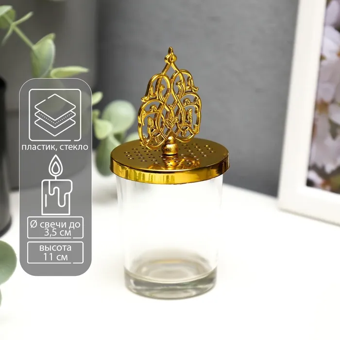 Подсвечник стекло на 1 свечу "Королевский узор" золото 11х5,5х5,5 см