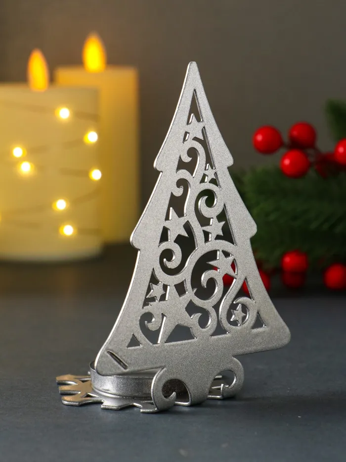 Подсвечник новогодний "Ёлка со звёздами" серебряный 6,6х9х12,5 см — Характеристики
