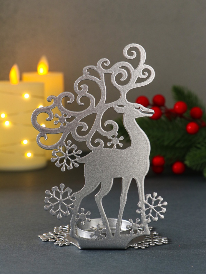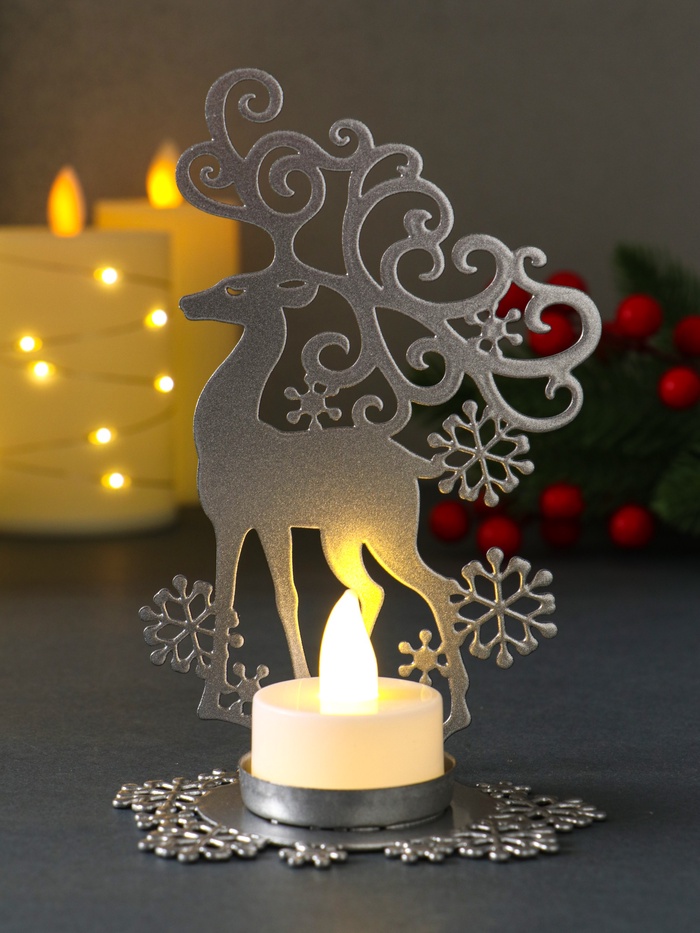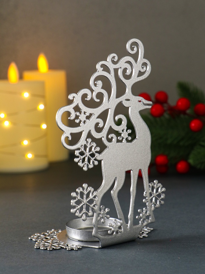 Подсвечник новогодний "Олень" серебряный 6,5х9,6х14,5 см — Характеристики