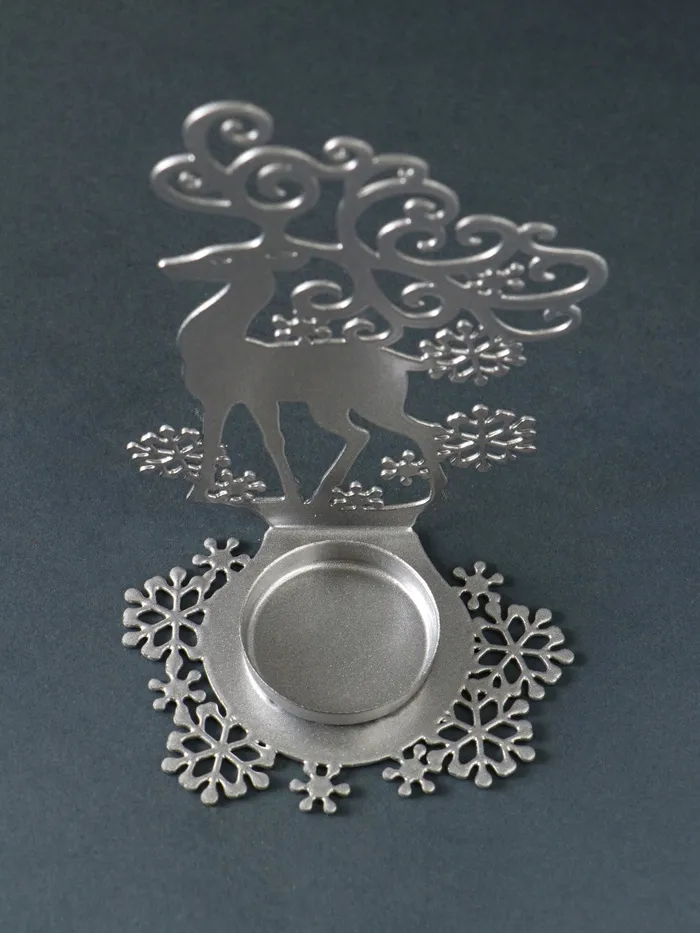 Подсвечник новогодний "Олень" серебряный 6,5х9,6х14,5 см