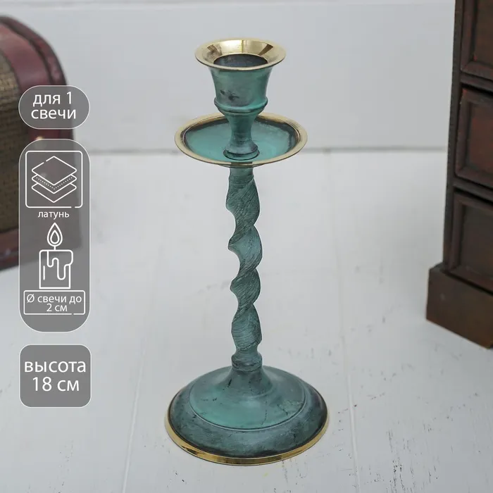 Подсвечник под старину "Вираж" латунь 7,5х7,5х18 см
