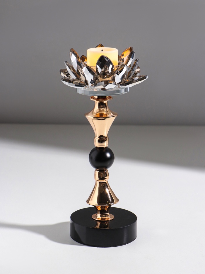 Подсвечник на 1 свечу «Лотос», чёрно-золотой, 8×8×22 см