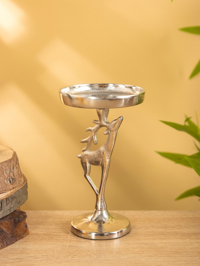 Подсвечник «Оленёнок», 10×10×17 см, алюминий, серебряный — Характеристики