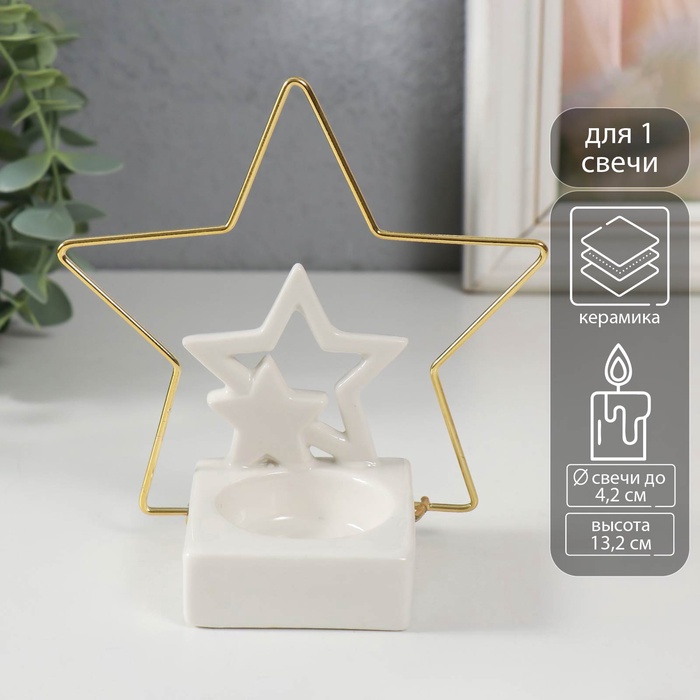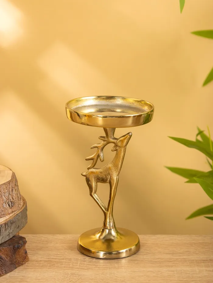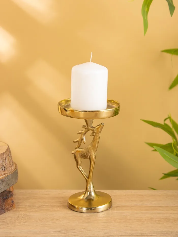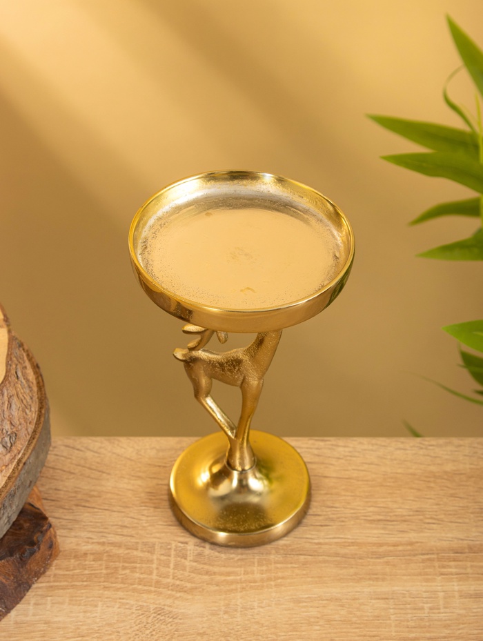 Подсвечник «Олененок» из золотистого алюминия - очаровательное новогоднее украшение для создания праздничной атмосферы. Компактные размеры 10×10×17 см позволяют разместить его на любой поверхности. Изящная фигурка оленя с одним рожком станет милым акцентом в вашем праздничном декоре.