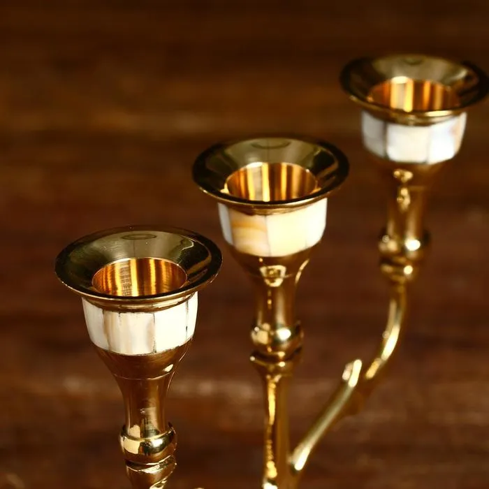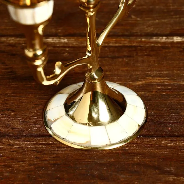 Подсвечник "Паджеро" на 3 свечи, латунь, перламутр 13,5х6,5х15,5 см