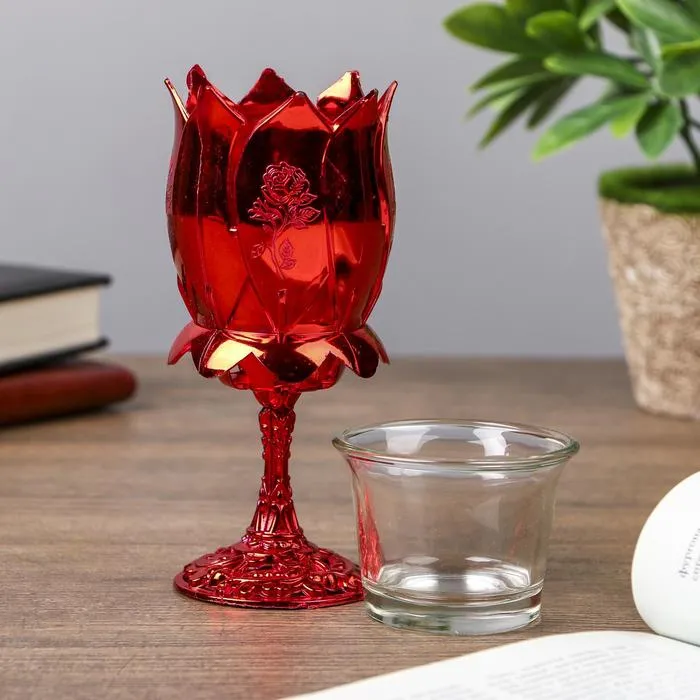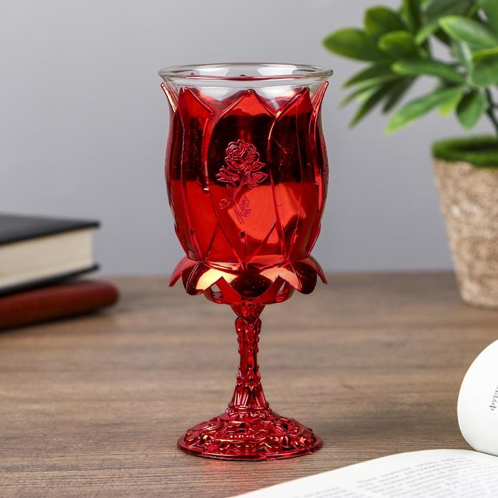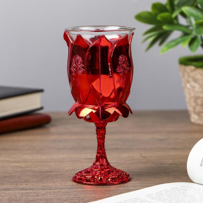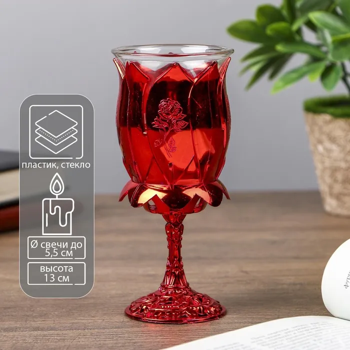 Подсвечник пластик, стекло на 1 свечу "Роза" бокал на ножке красный 13х6х6 см — Характеристики