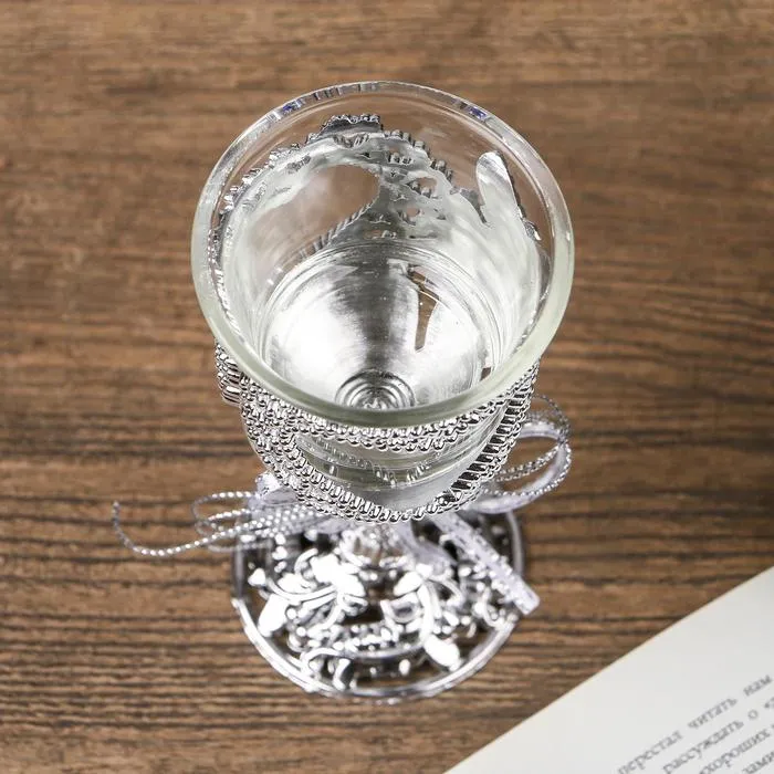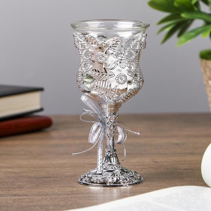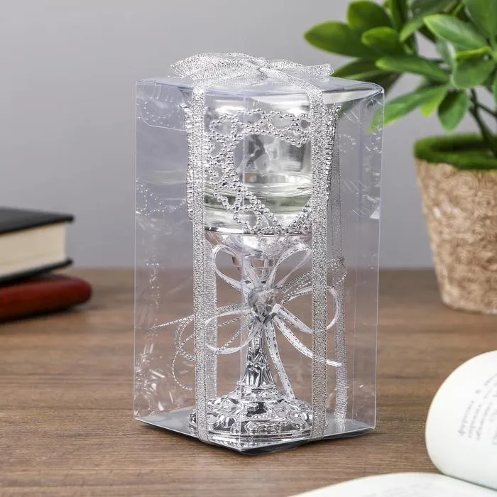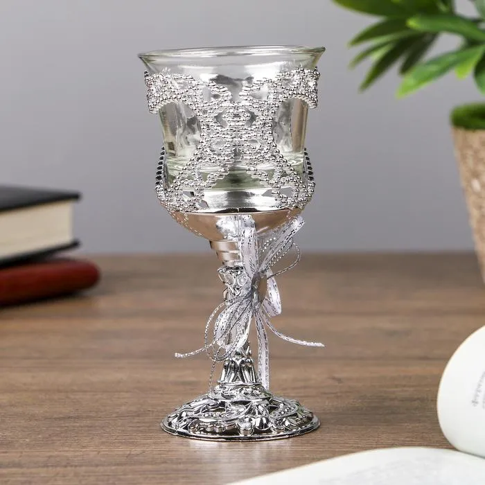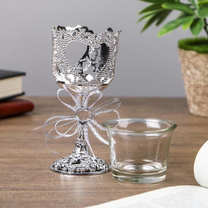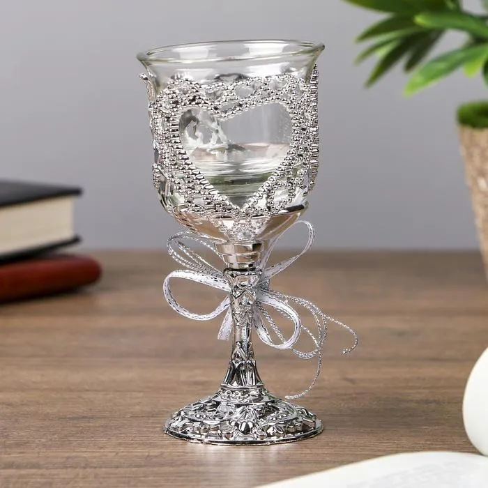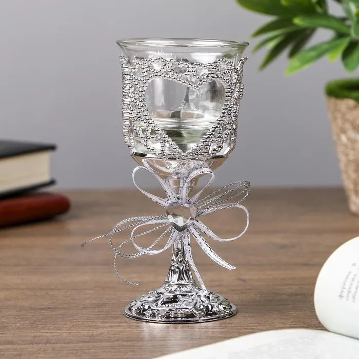Подсвечник пластик, стекло на 1 свечу "Сердце и бант" бокал на ножке серебро12,5х6,3х6,3см — Характеристики