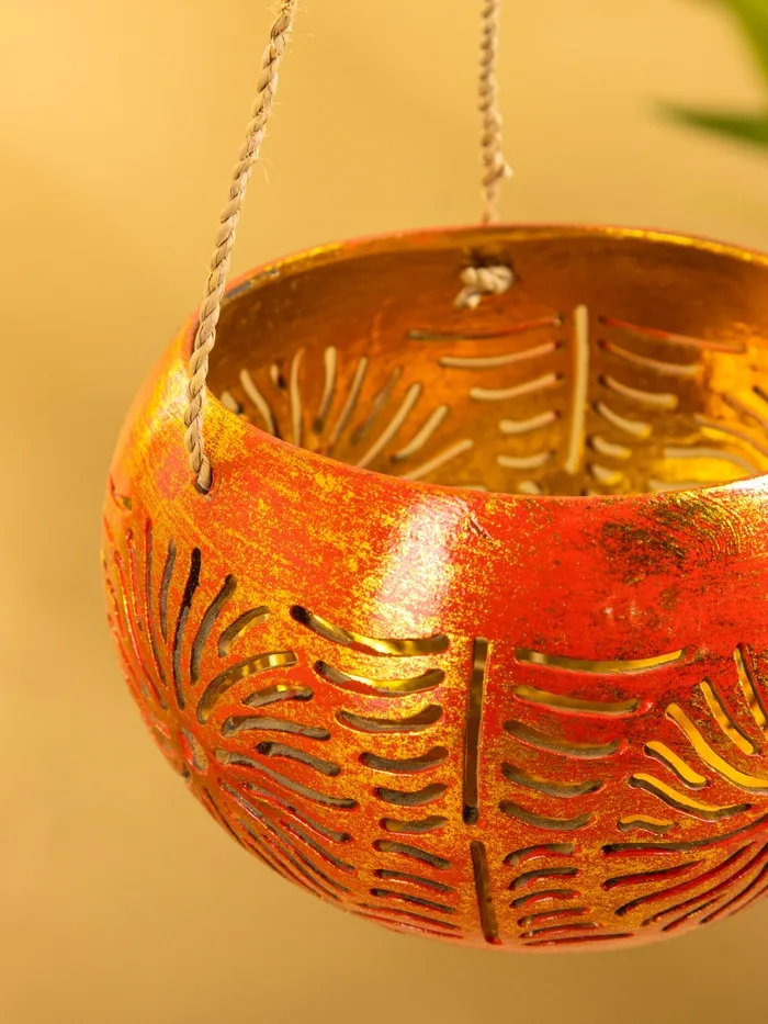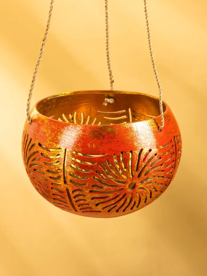 Подсвечник подвесной из кокоса, 11-14 см, красно-золотой