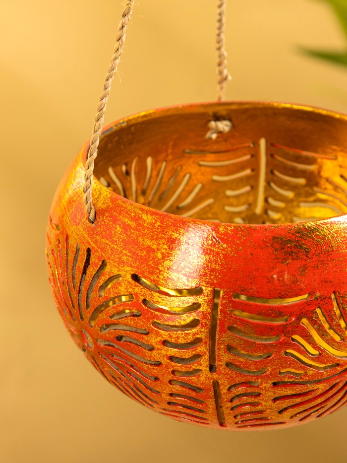 Подсвечник подвесной из кокоса, 11-14 см, красно-золотой — Характеристики