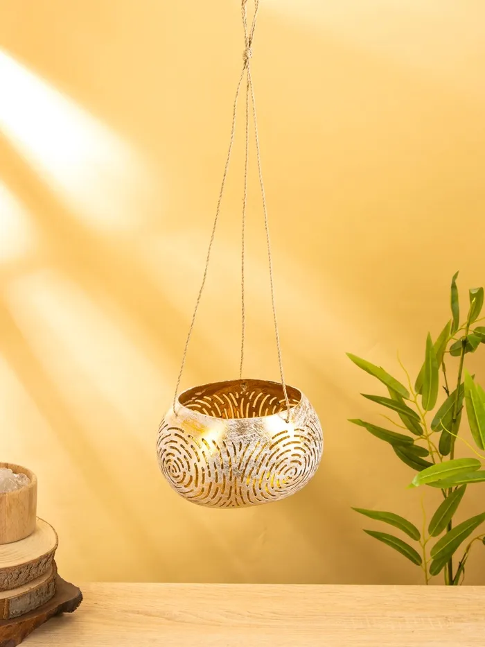 Подсвечник подвесной из кокоса, 13-16 см, бело-золотой