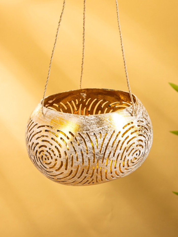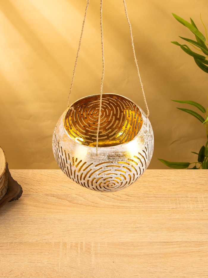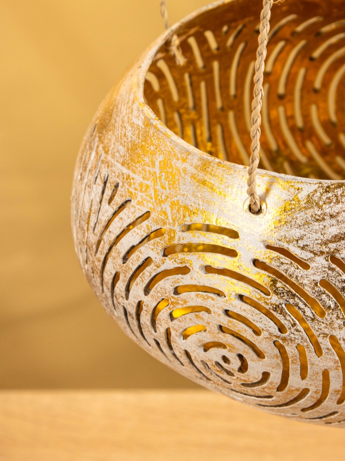 Подсвечник подвесной из кокоса, 13-16 см, бело-золотой — Характеристики