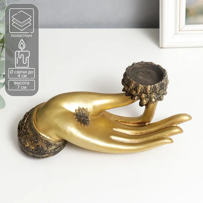 Подсвечник на 1 свечу «Рука с лотосом», полистоун, 9.4×21.5×7 см